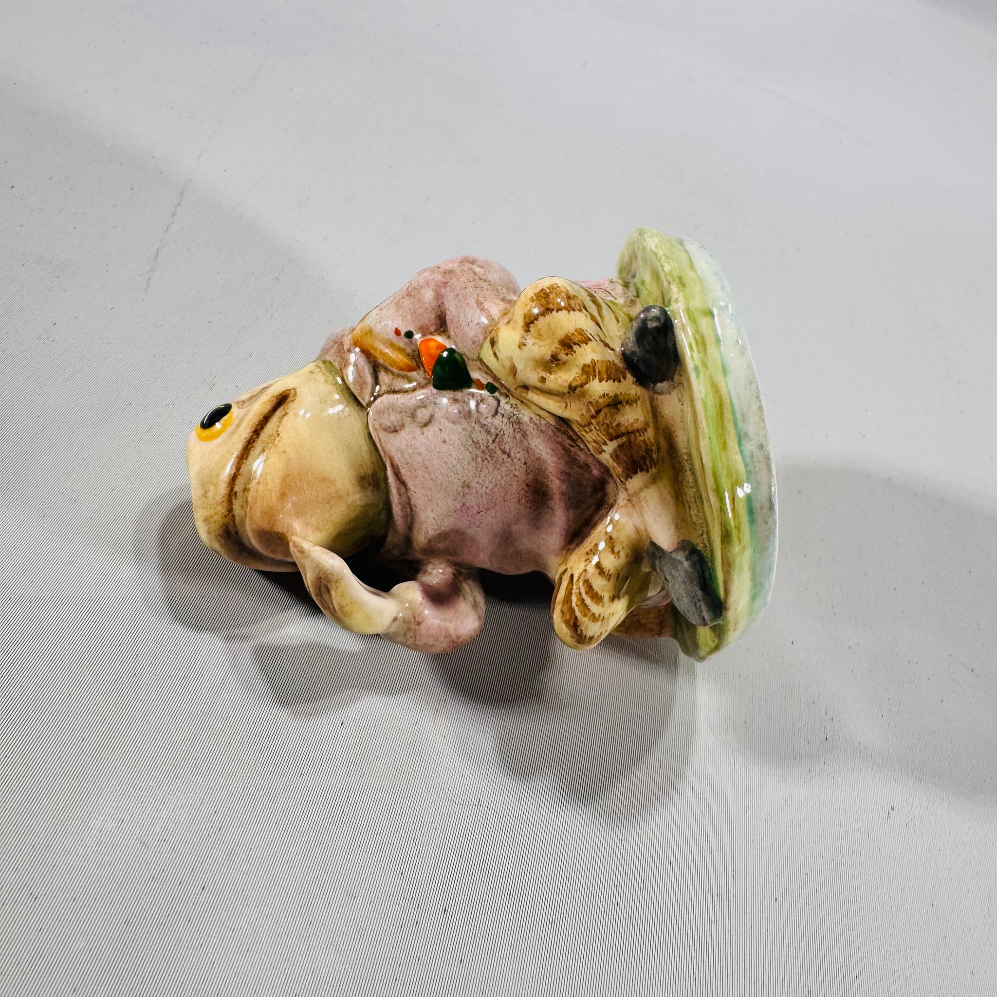 Classic Beswick Jeremy Fisher with the 1950 Frederick Warne back stamp. Hand-painted ceramic, 3×2×2 in. A sweet, display-ready Beatrix Potter original.