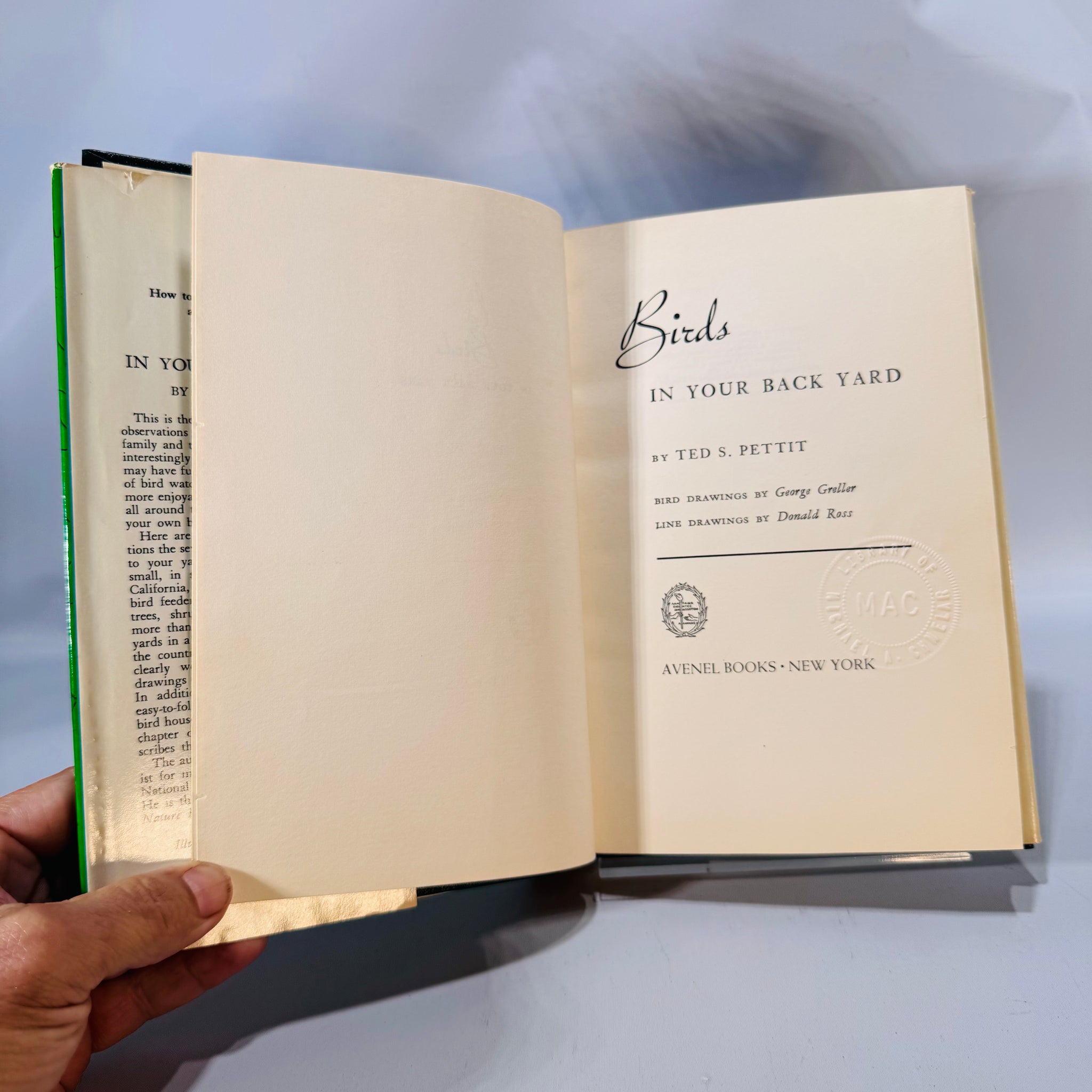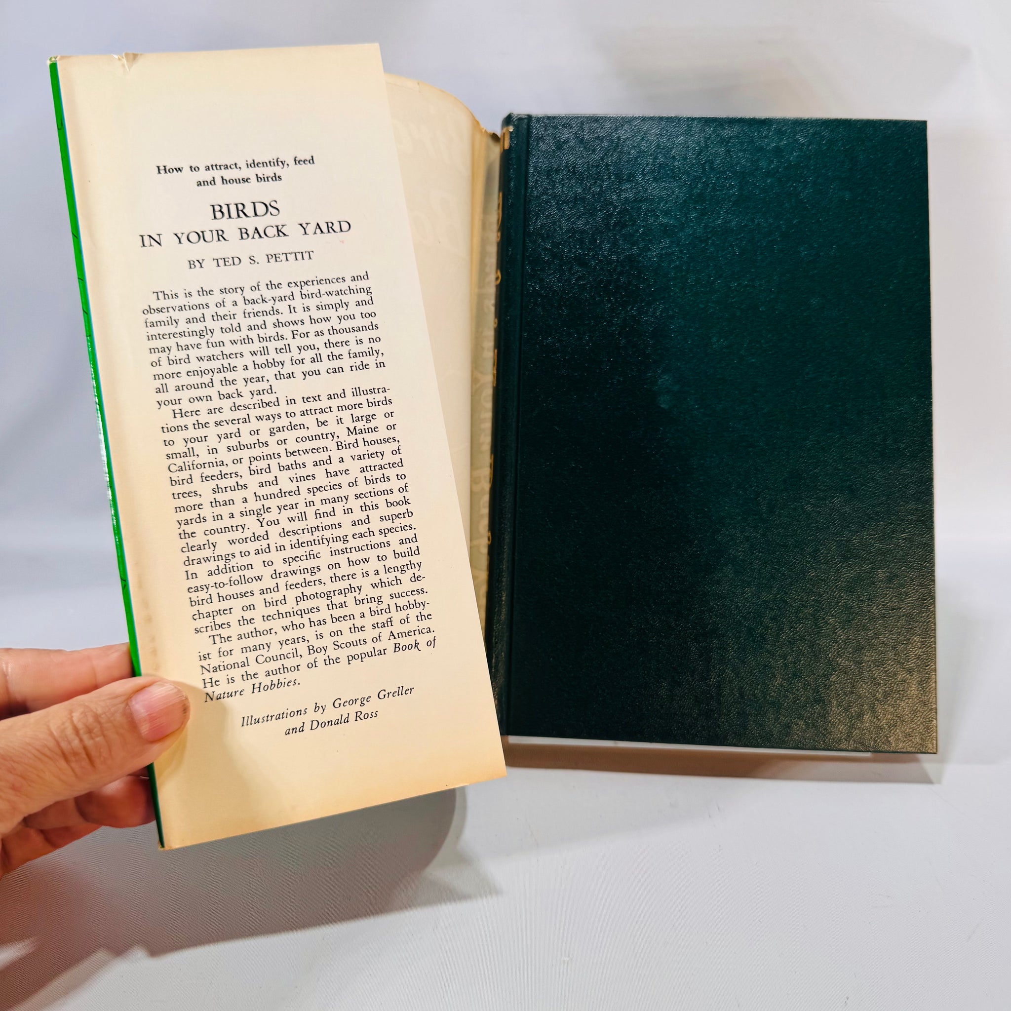 Inside you’ll find clear ID drawings, feeder and birdhouse guidance, seasonal tips, and handy tables—illustrated by George Greller and Donald Ross. Photo-verified condition with its bright green jacket; ready for your shelf and your garden plans.