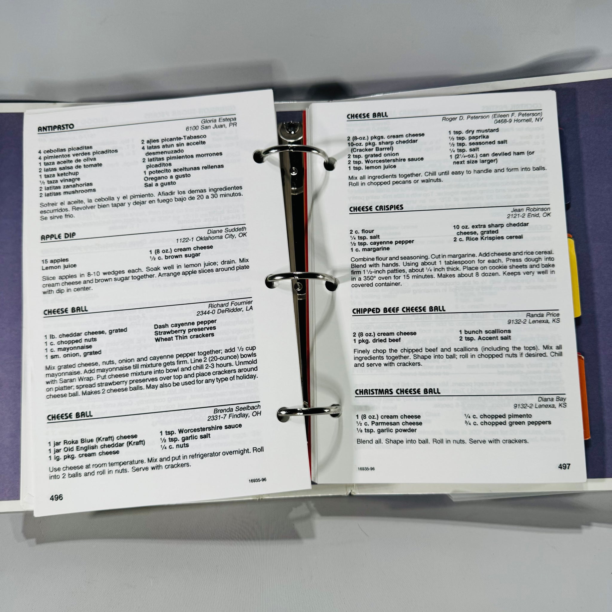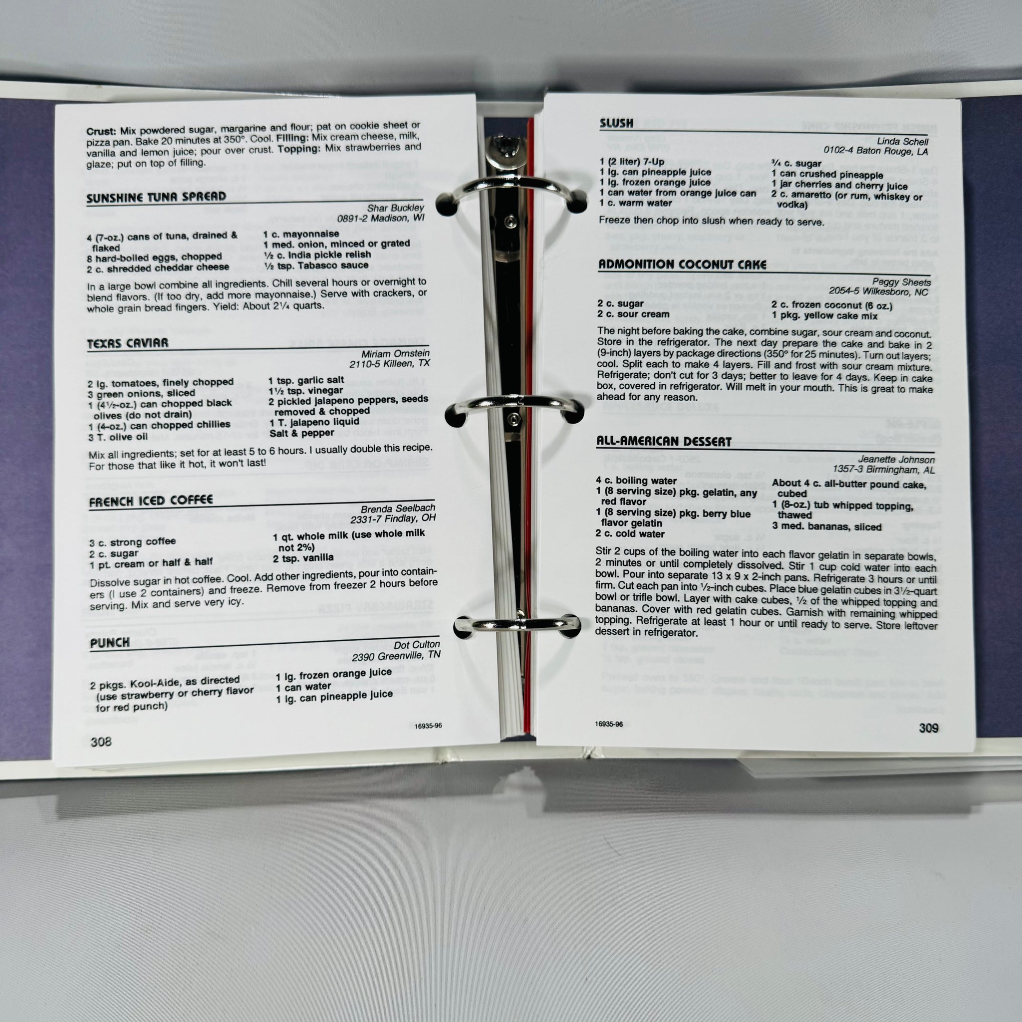 cheerful slice of 1990s Americana, A Cause for Celebration is a JCPenney employee-contributed community cookbook built for real-life holidays—potlucks, office parties, family dinners, and “I need a dessert by tonight” moments. Recipes are credited to the associates who submitted them, so every page reads like a little time capsule of home kitchens across the U.S. This edition is housed in a sturdy 3-ring binder with tabbed sections (easy to open flat on the counter and easy to use). Photo-verified details below—ready for your next celebration.