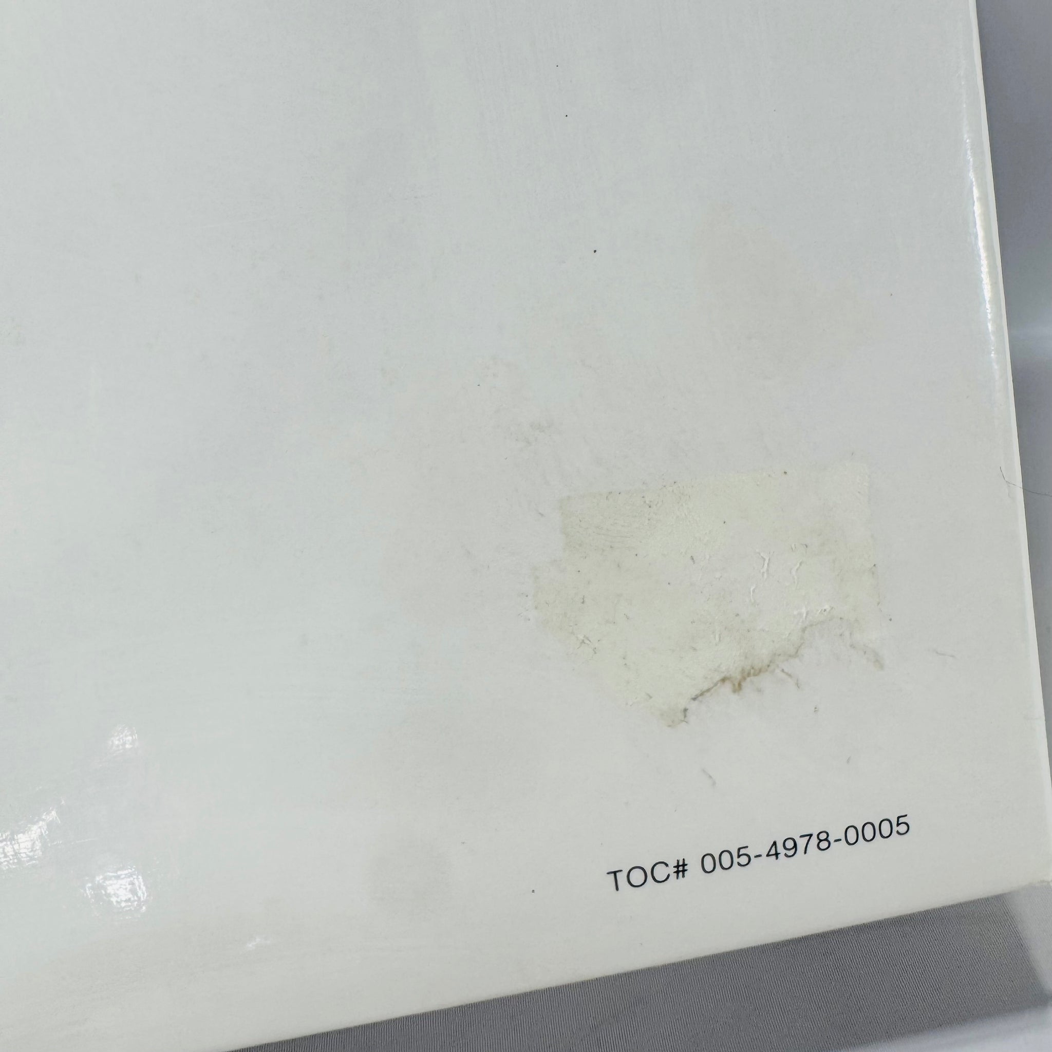 Notes: Clean, readable interior pages shown. Binder shows noticeable shelf/handling wear with scuffing and light soiling; visible sticker/label residue area on back cover. Rings appear intact and functional.