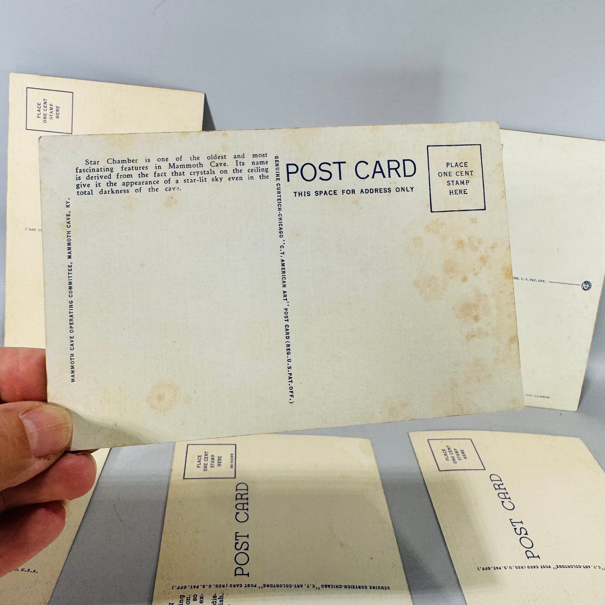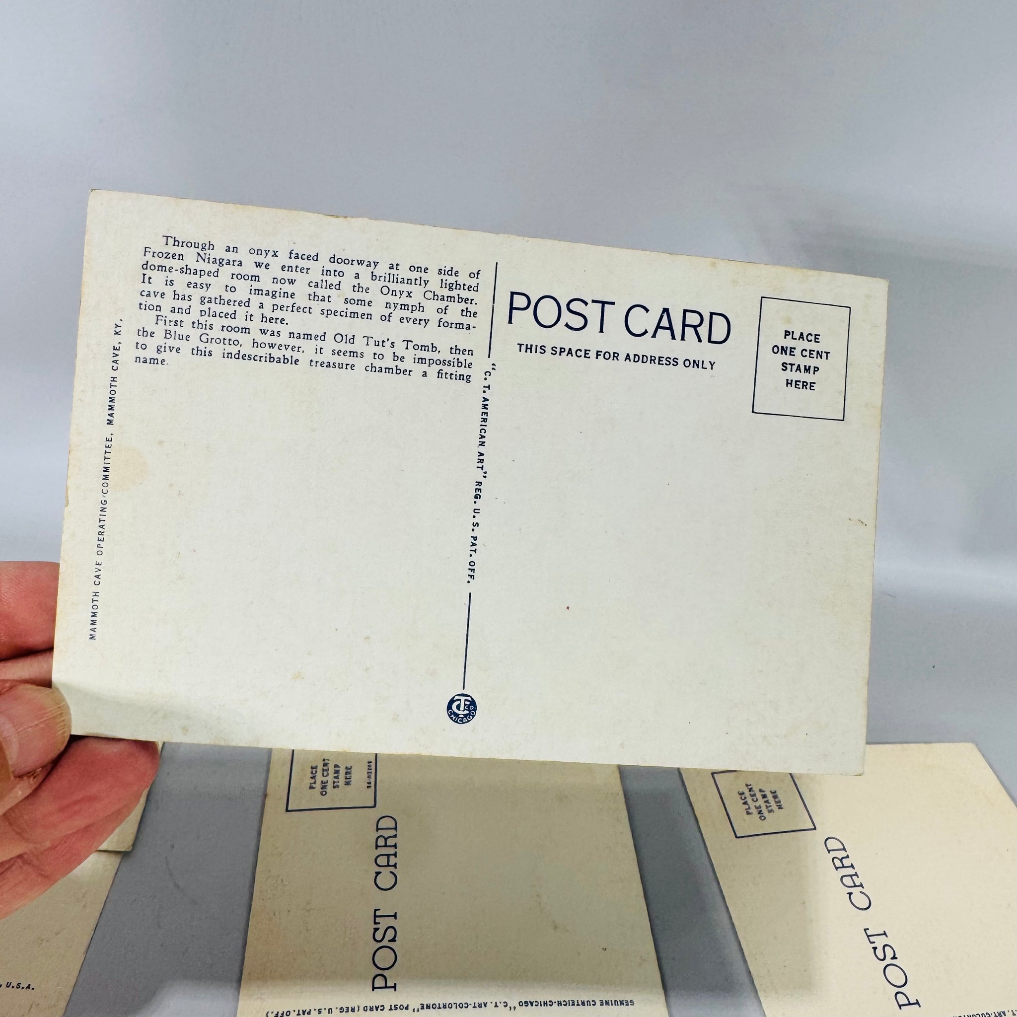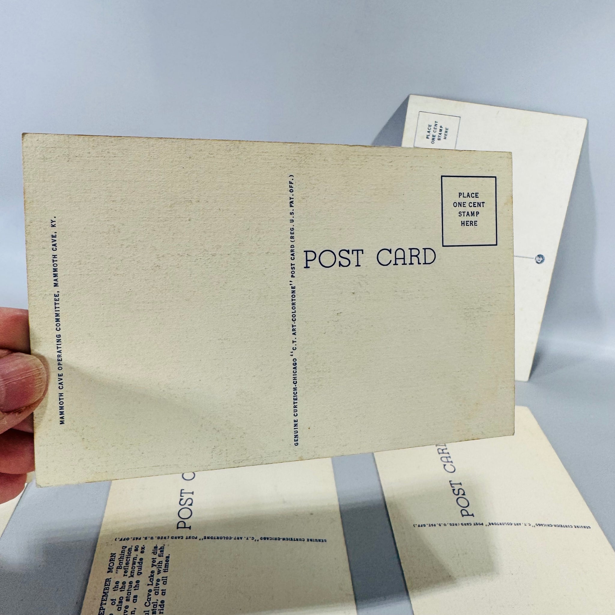 This is a set of six vintage linen postcards featuring Mammoth Cave, Kentucky—classic travel ephemera with that textured linen look collectors love. Because Mammoth Cave is famous for being the world’s longest cave system, these cards double as a neat slice of American tourism history.