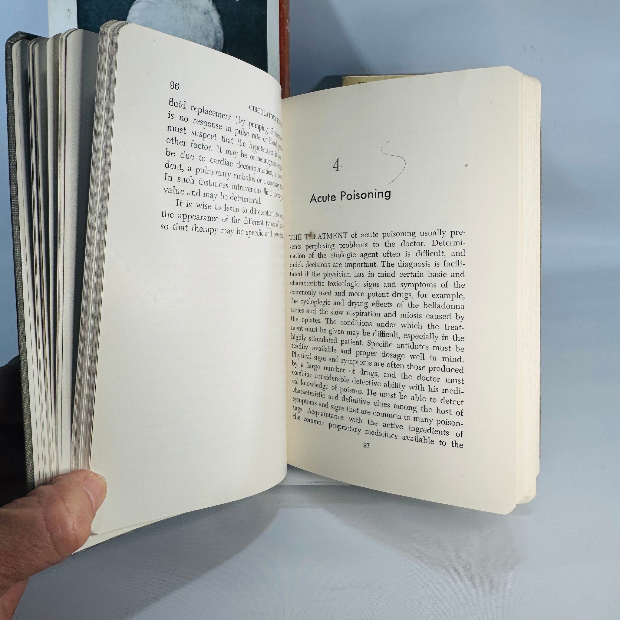 • Manual of Medical Emergencies: cloth wear and minor marks; previous owner signature on front matter; interior shows age toning and medical illustrations.