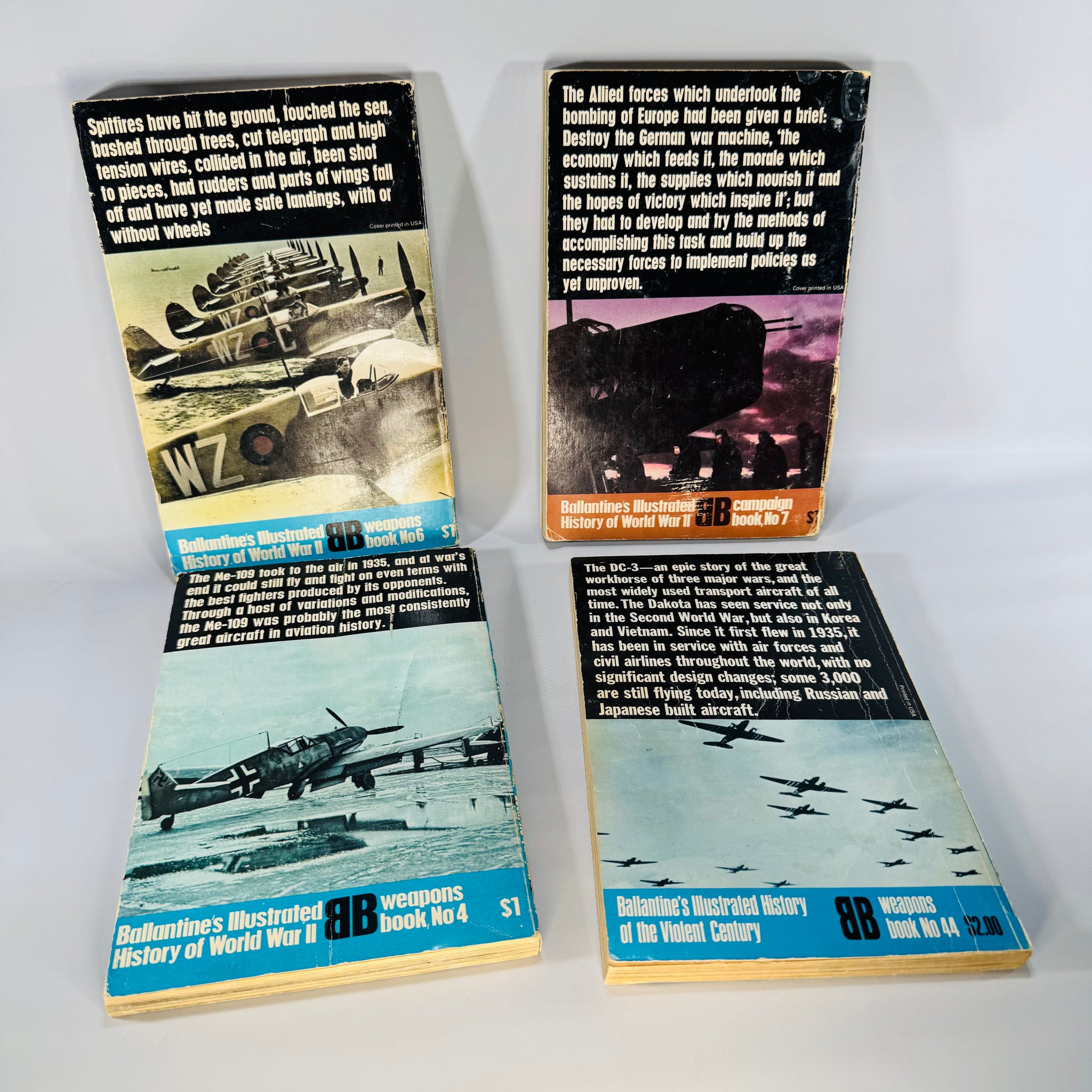 A compact little time capsule of WWII aviation history—four Ballantine Illustrated paperbacks with bold mid-century cover design and photo-heavy interiors.