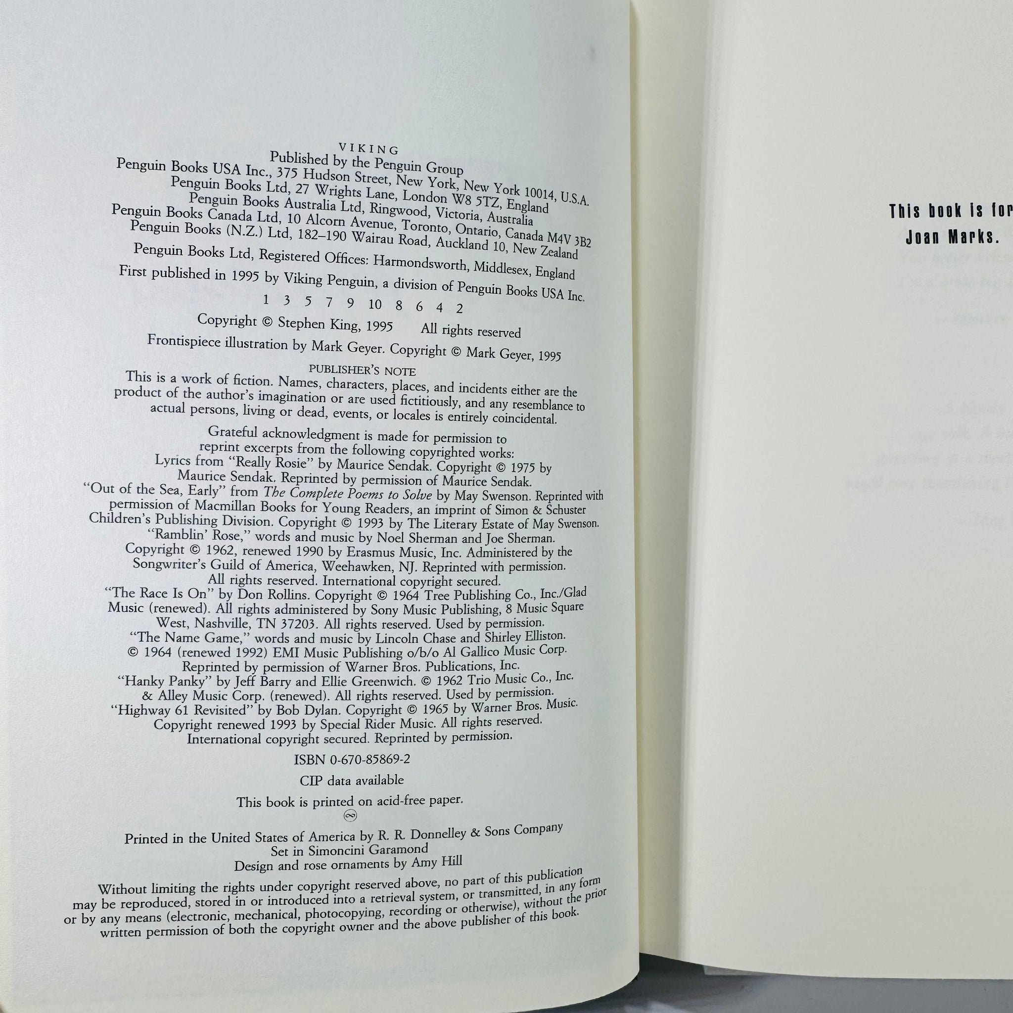 This is a first edition, first printing of Stephen King’s Rose Madder, published by Viking in 1995. The novel blends psychological tension with elements of myth and fantasy as a woman leaves an abusive marriage and starts over.