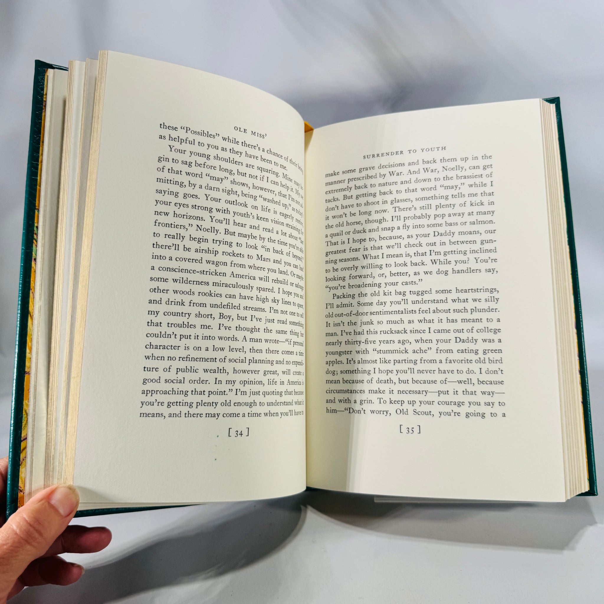 Limited 1986 Premier Press edition of Ole Miss’ by Nash Buckingham—elegantly bound in teal leather with gilt edges, number 1171 of 3000.