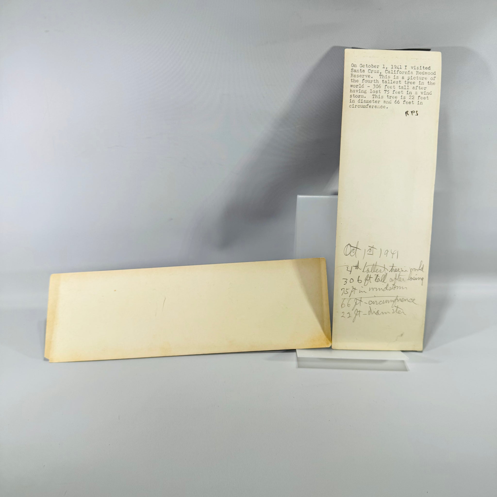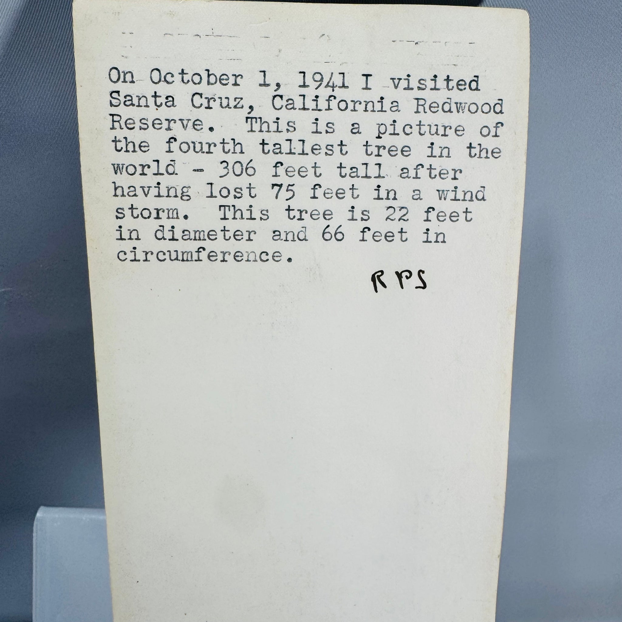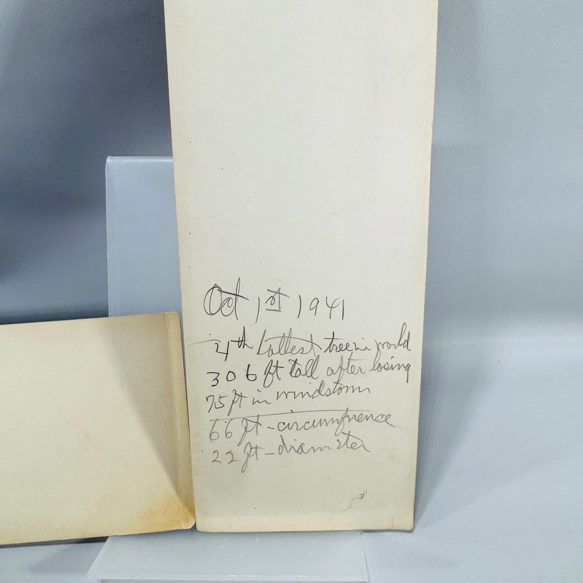 One card is dated Oct 1, 1941 in the written message, with memorable stats about the tree’s height and size—an instant conversation piece for a desk display, frame wall, or ephemera box.