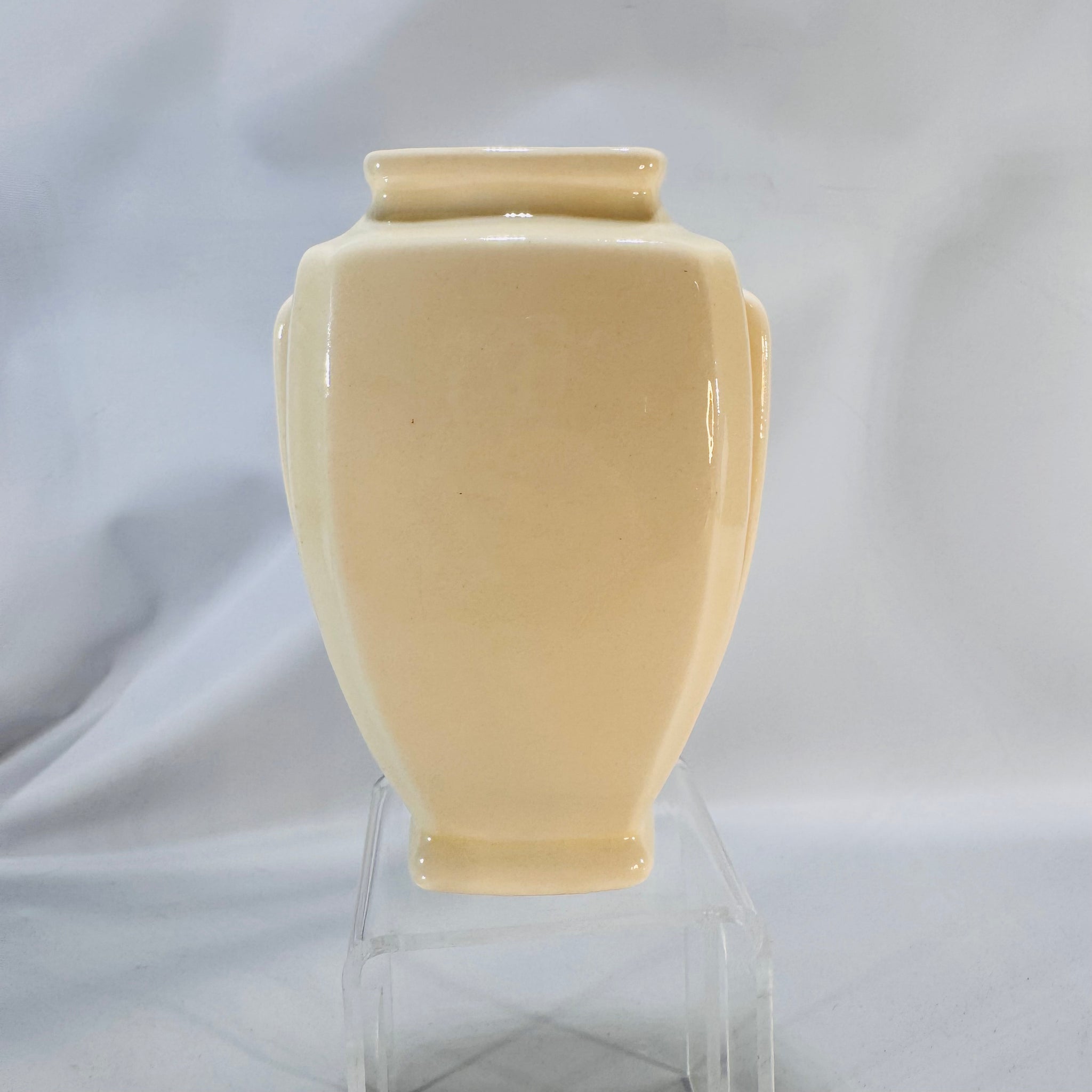 A petite American art-pottery vase with soft color and streamlined handles. It’s the kind of piece that slips onto a shelf and quietly steals the scene.
