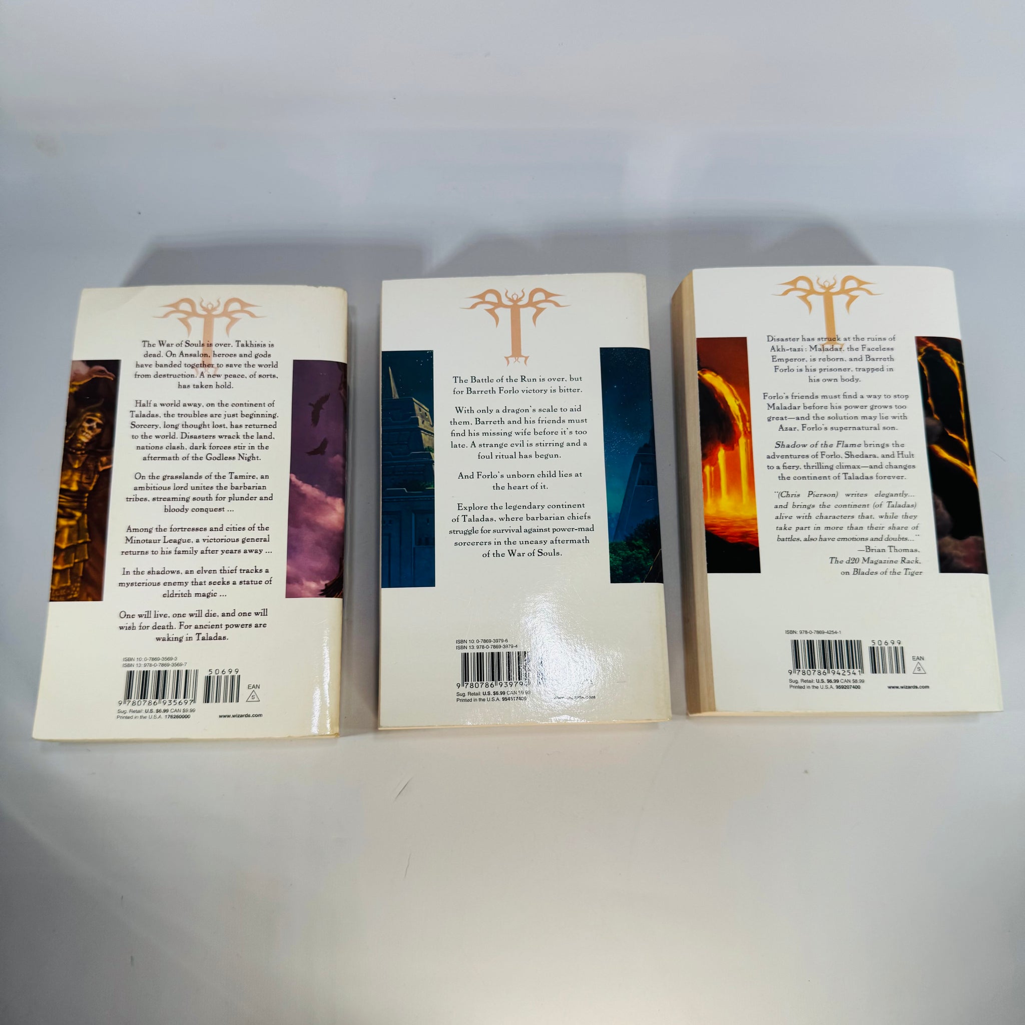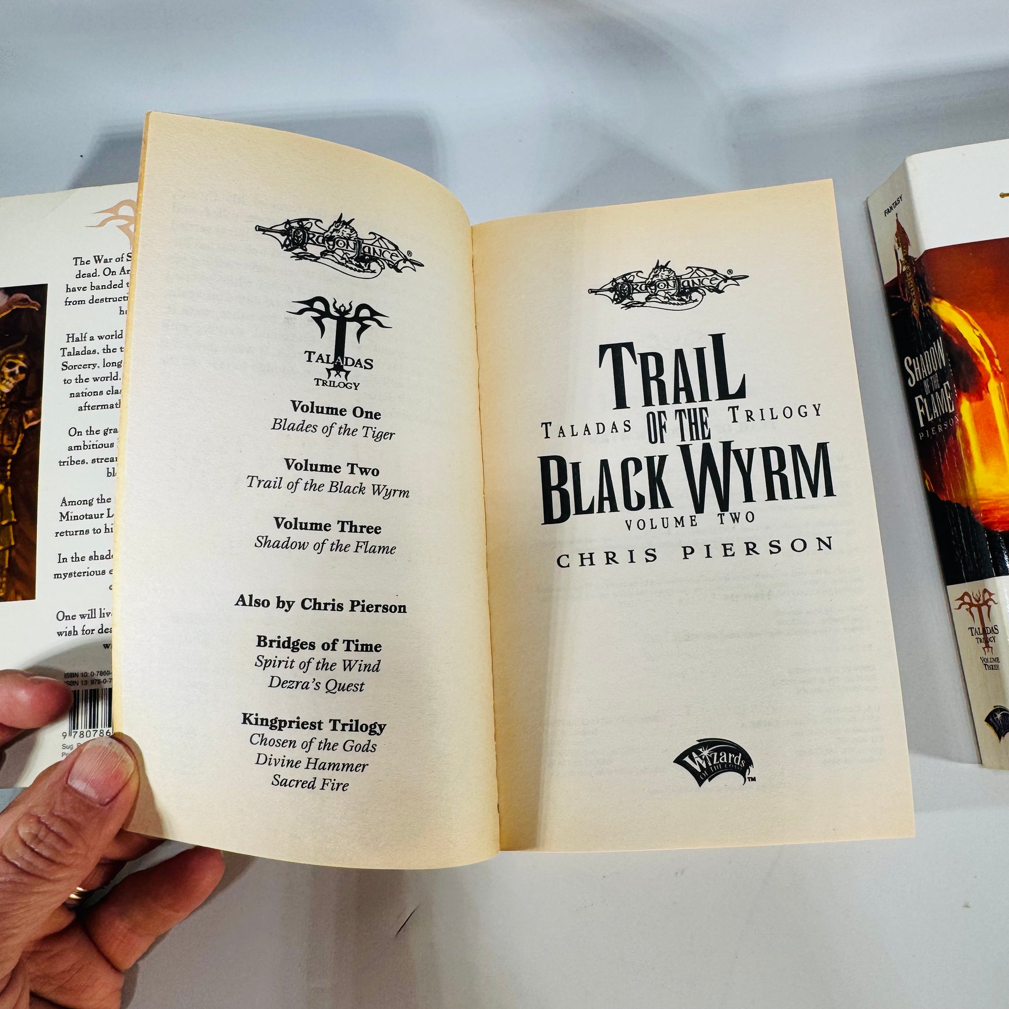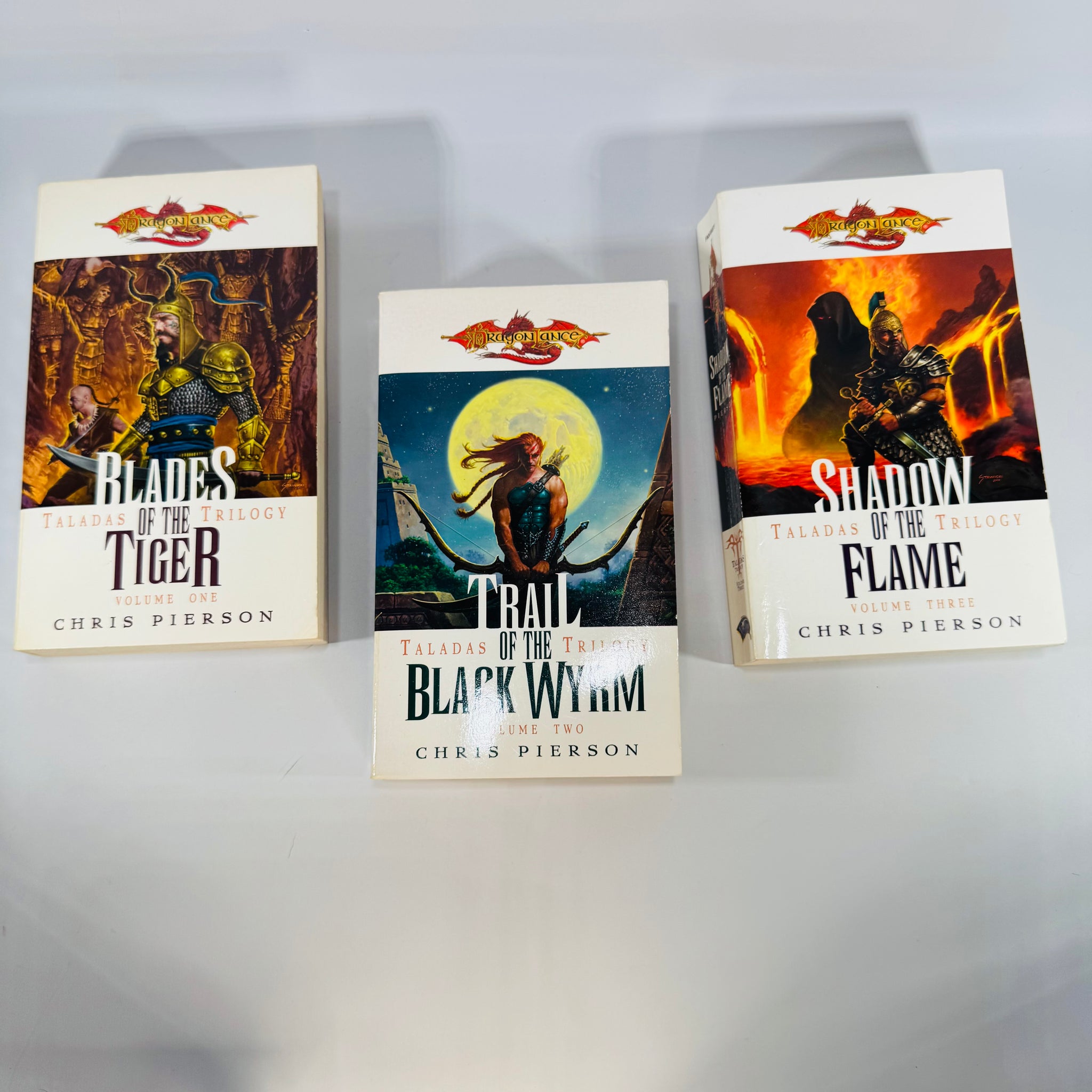 A complete 3-book Dragonlance Taladas Trilogy paperback set by Chris Pierson, set on the far-off continent of Taladas rather than the more familiar Ansalon.