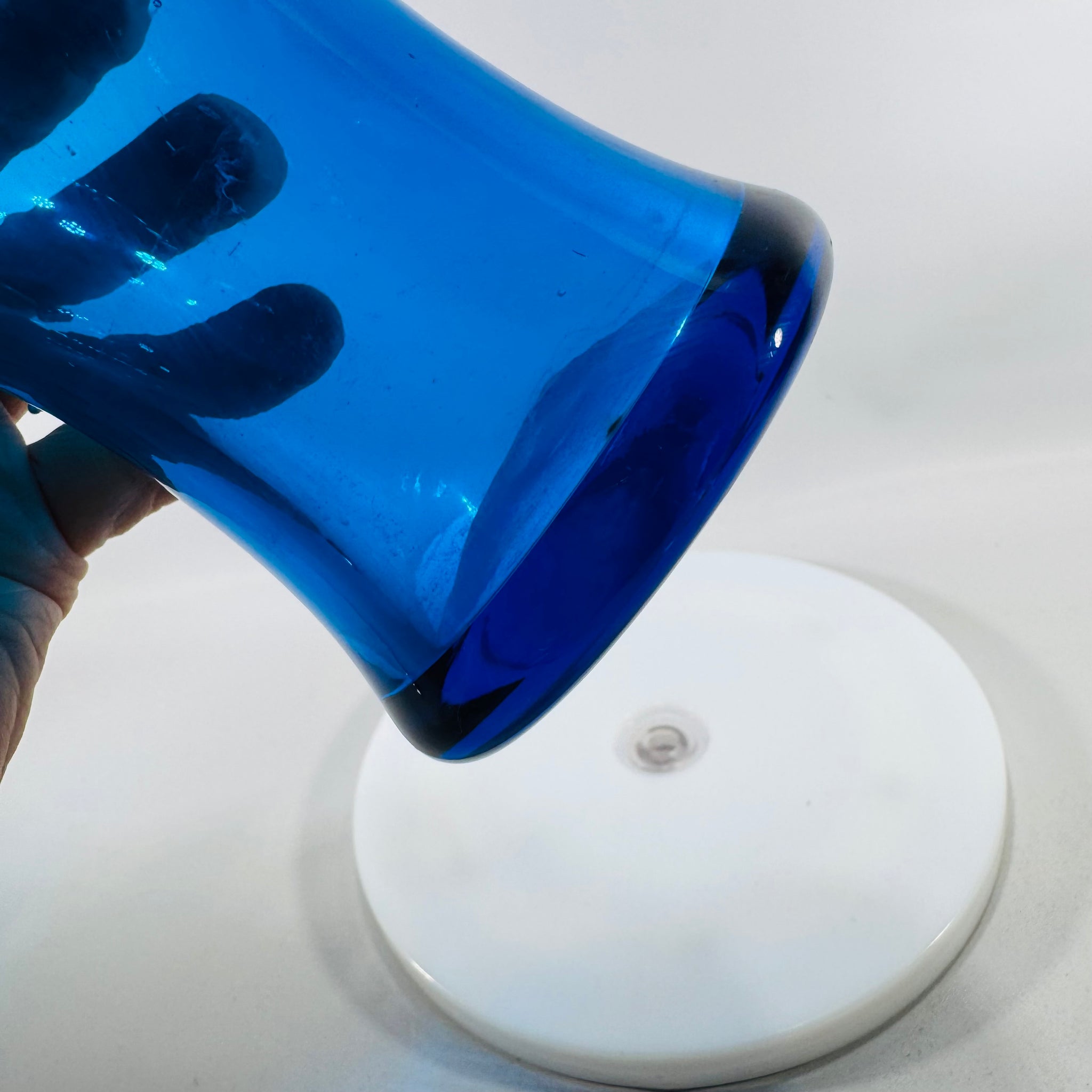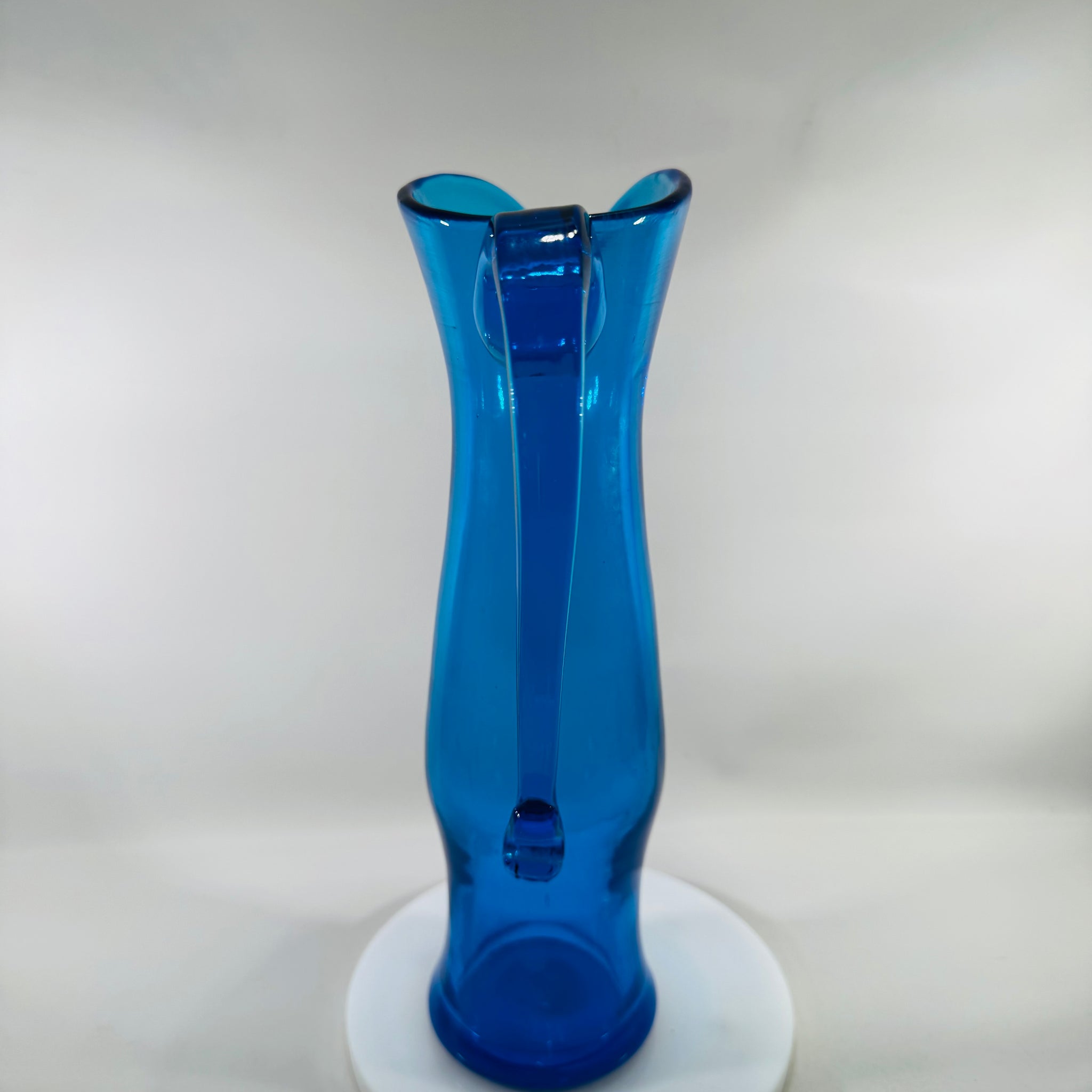 Bring in that classic mid-century glow with a hand-blown Blenko glass pitcher in rich cobalt/sapphire blue.