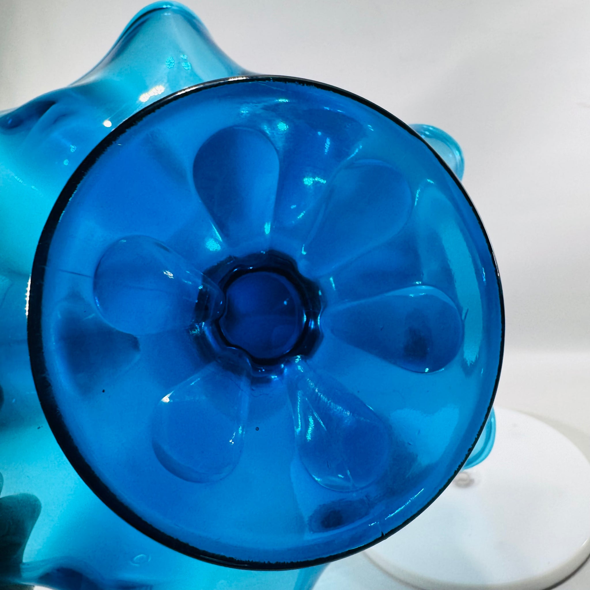 Viking’s Bluenique is one of those collector colors that instantly reads “real Mid-Century”—bold, luminous, and hard to replicate. The Epic 6-petal compote is especially display-friendly because it works as functional serveware and sculptural décor.