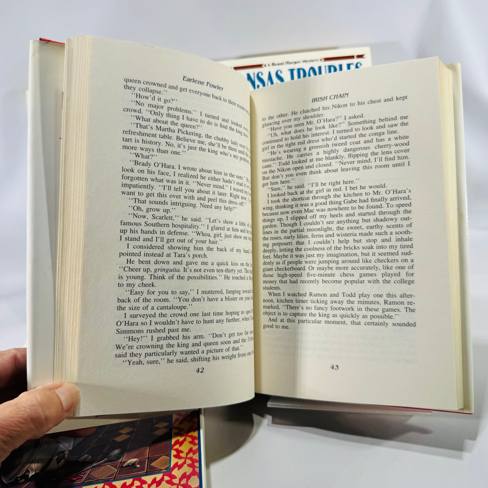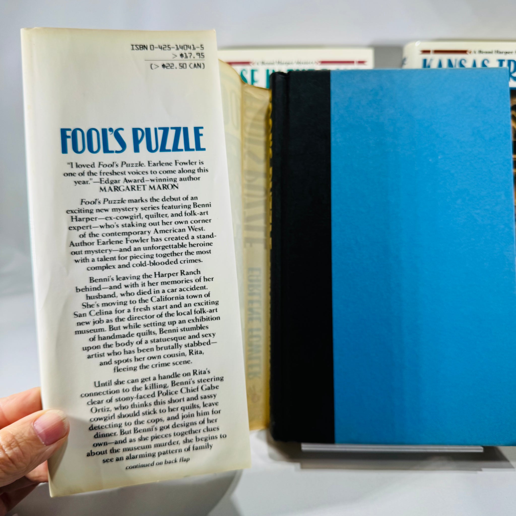 Love a smart small-town sleuth with quilting flair? This cozy mystery set collects four Benni Harper novels by Earlene Fowler—first editions from the mid-1990s—each blending murder, craft heritage, and California charm.