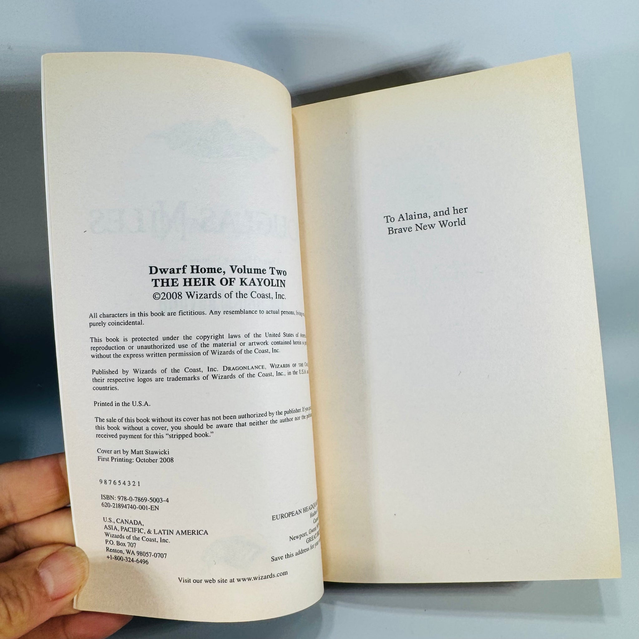 • Illustrator: Not confirmed from the photos; cover art by Matt Stawicki is listed on the shown copyright pages