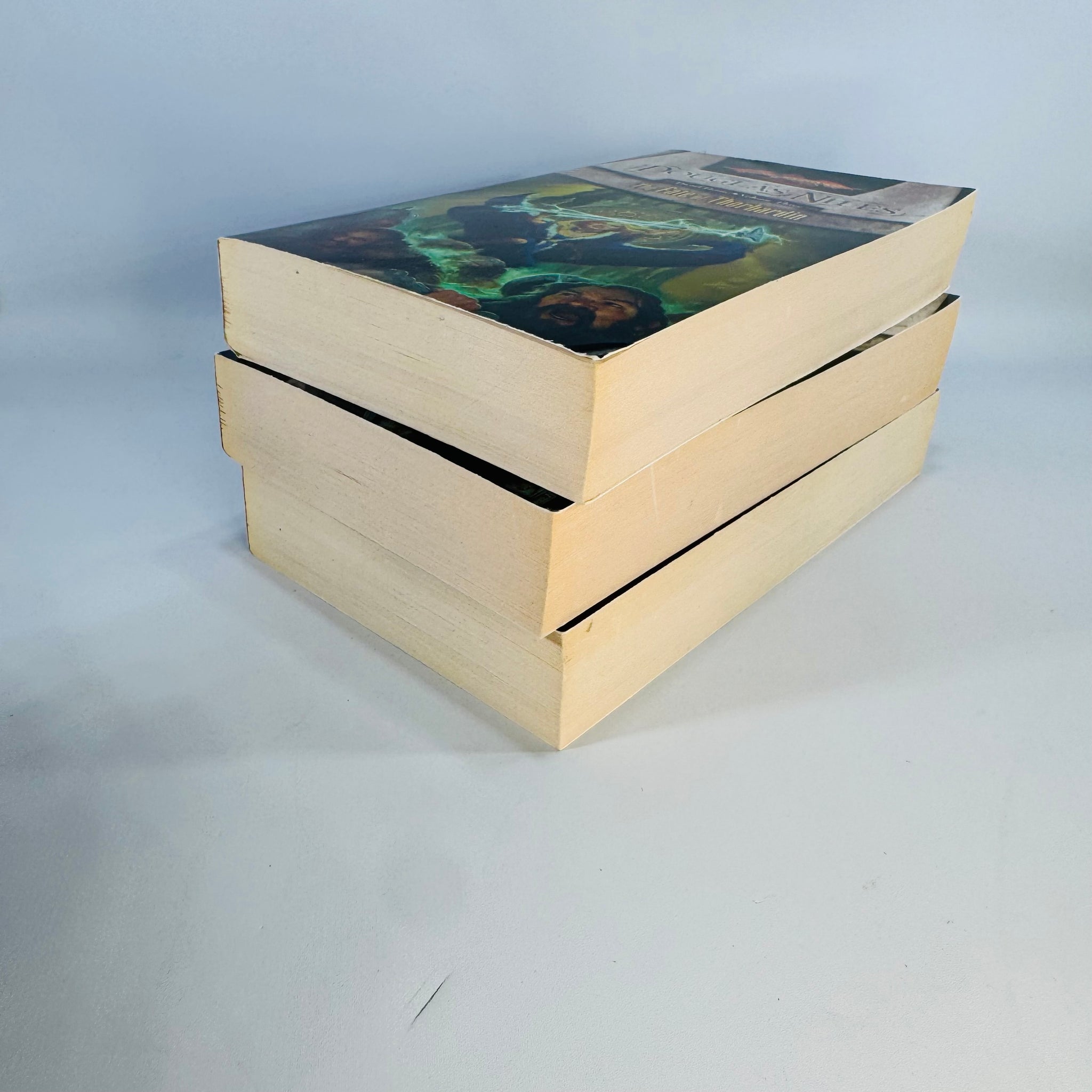 • Book 3, The Fate of Thorbardin, shows the heaviest visible corner and edge wear at the top front corner