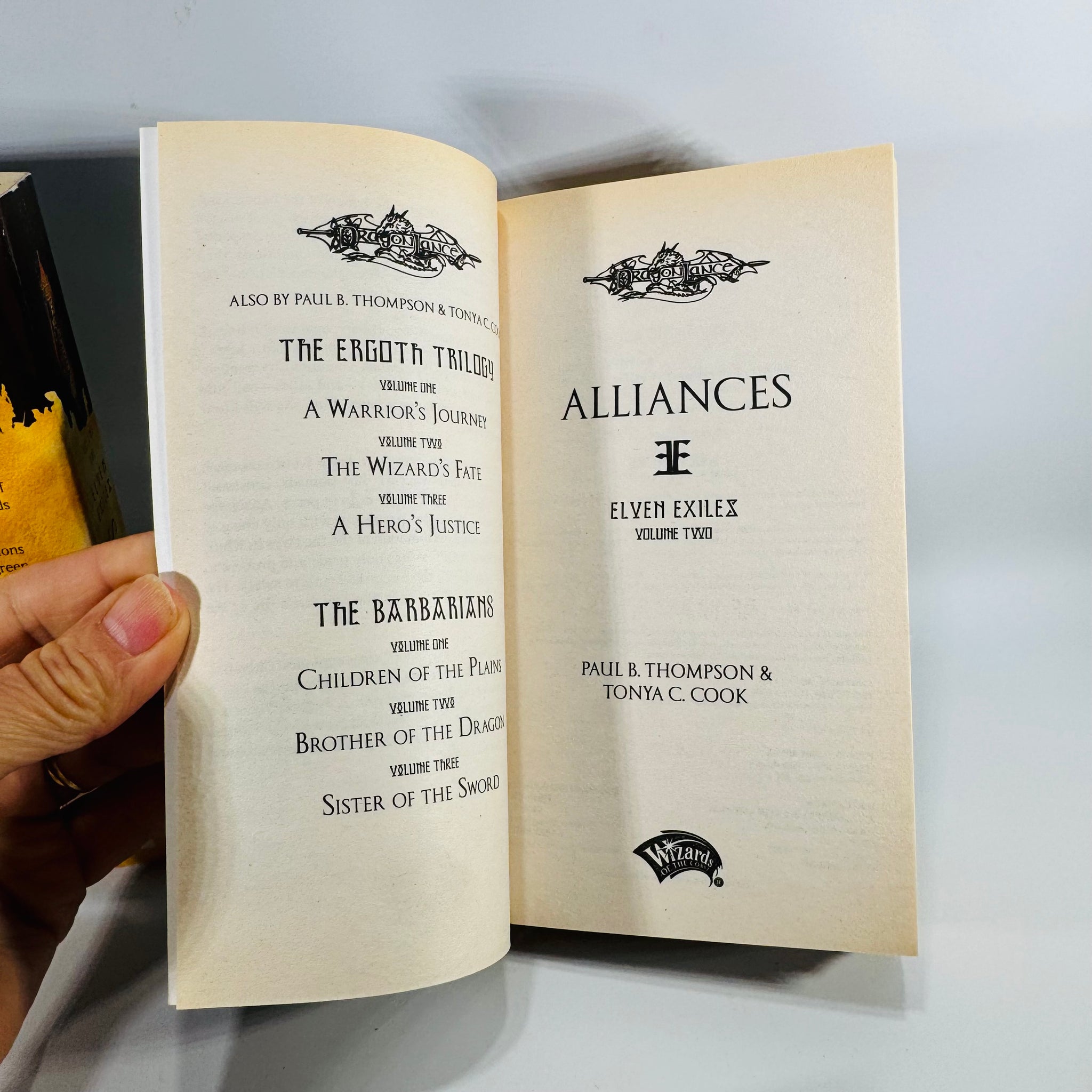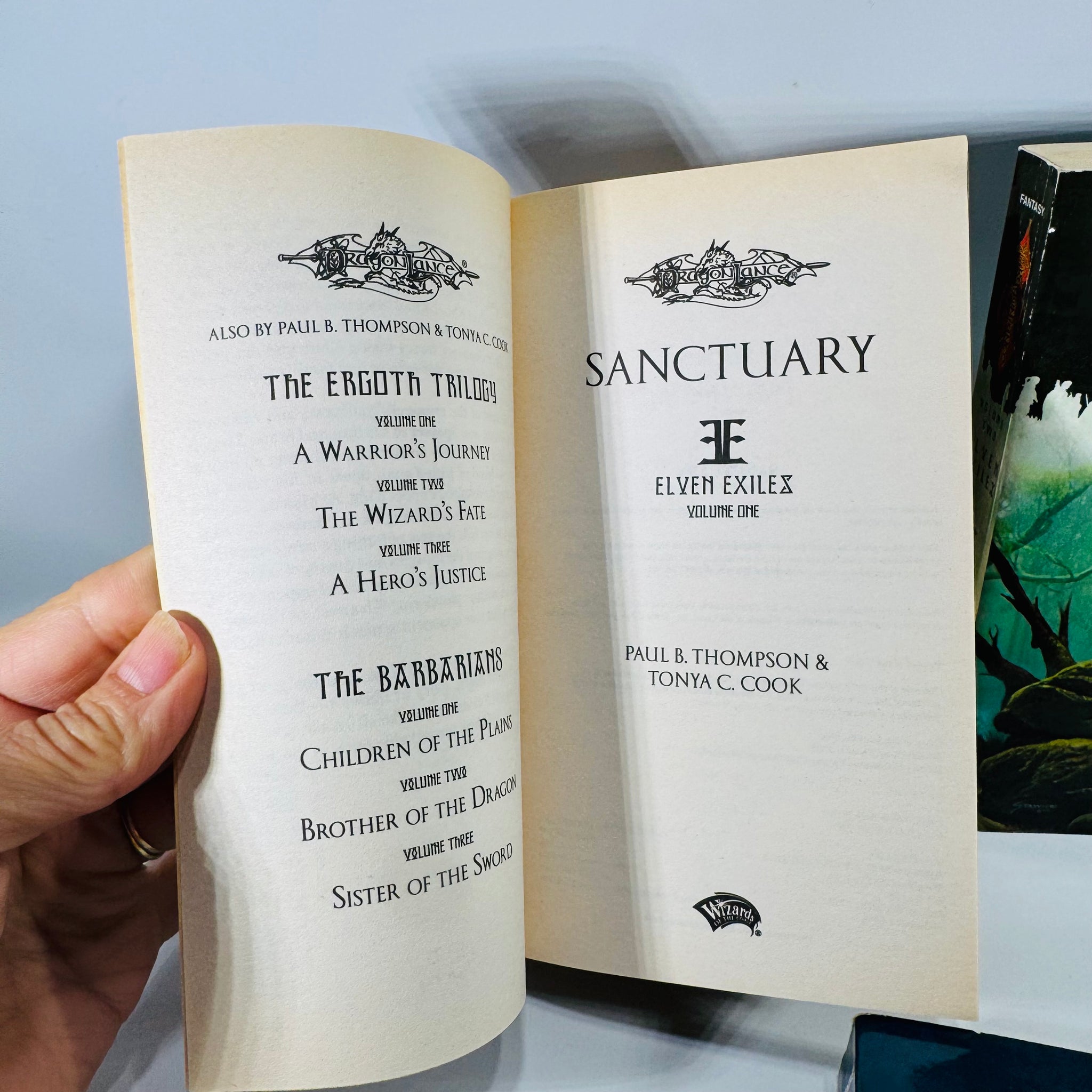 This is a nice reader set for Dragonlance fans who want the full Elven Exiles trilogy together in matching Wizards of the Coast paperbacks. The shown copyright pages with first printing statements add a useful point of interest for tie-in fantasy collectors as well.
