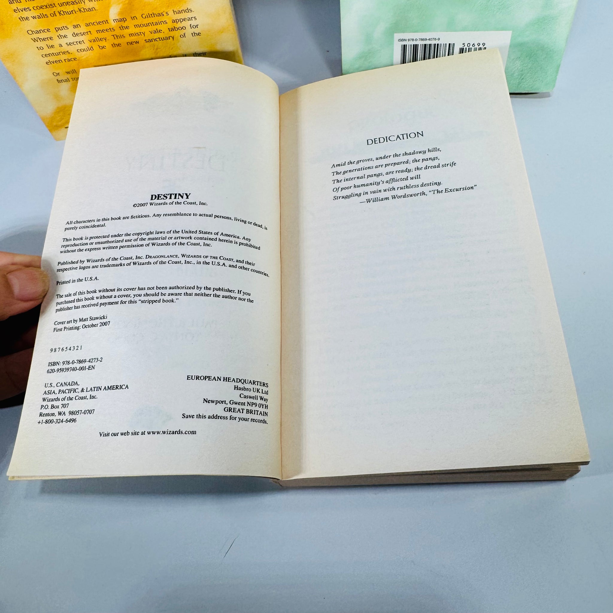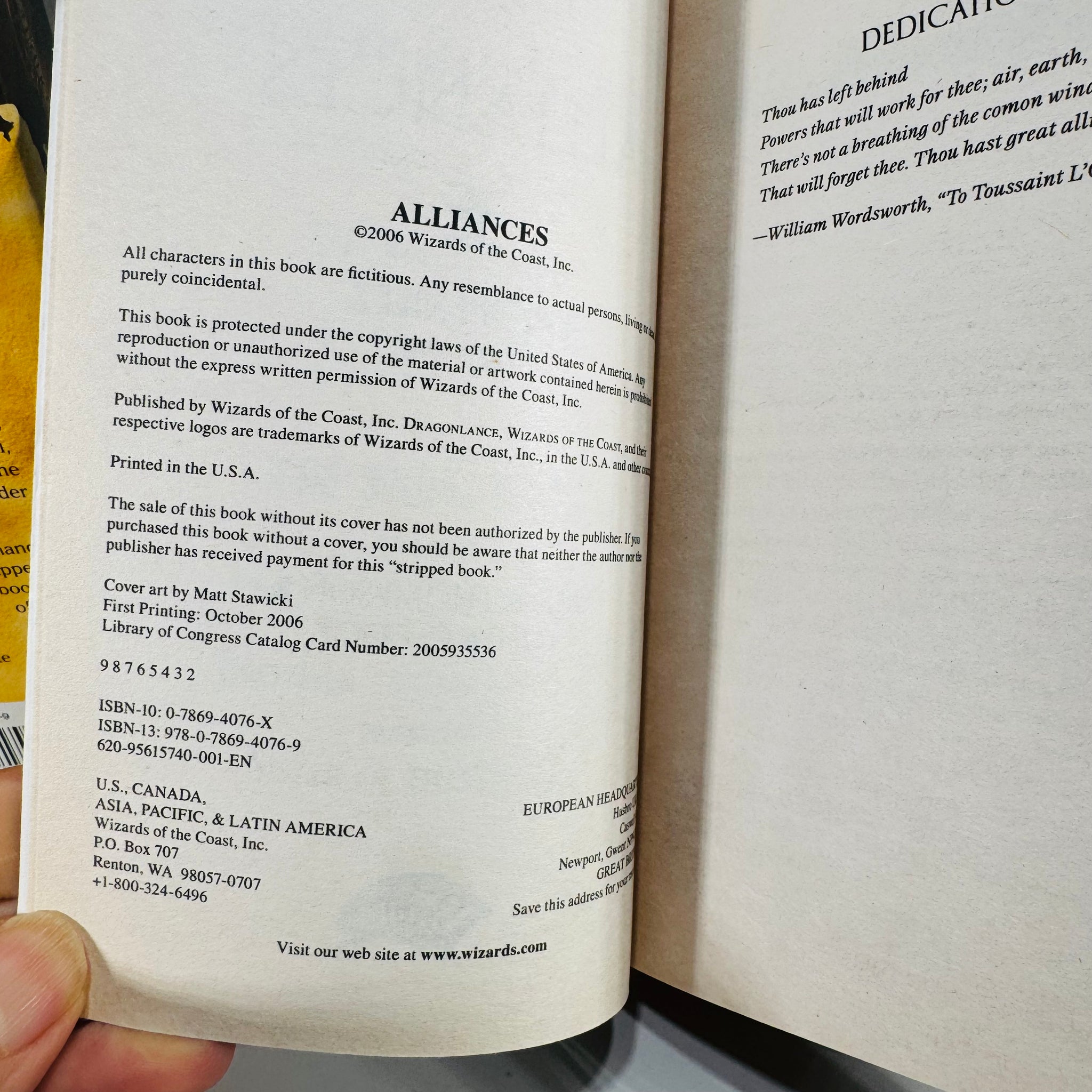 • Illustrator: cover art by Matt Stawicki is listed on the shown copyright pages