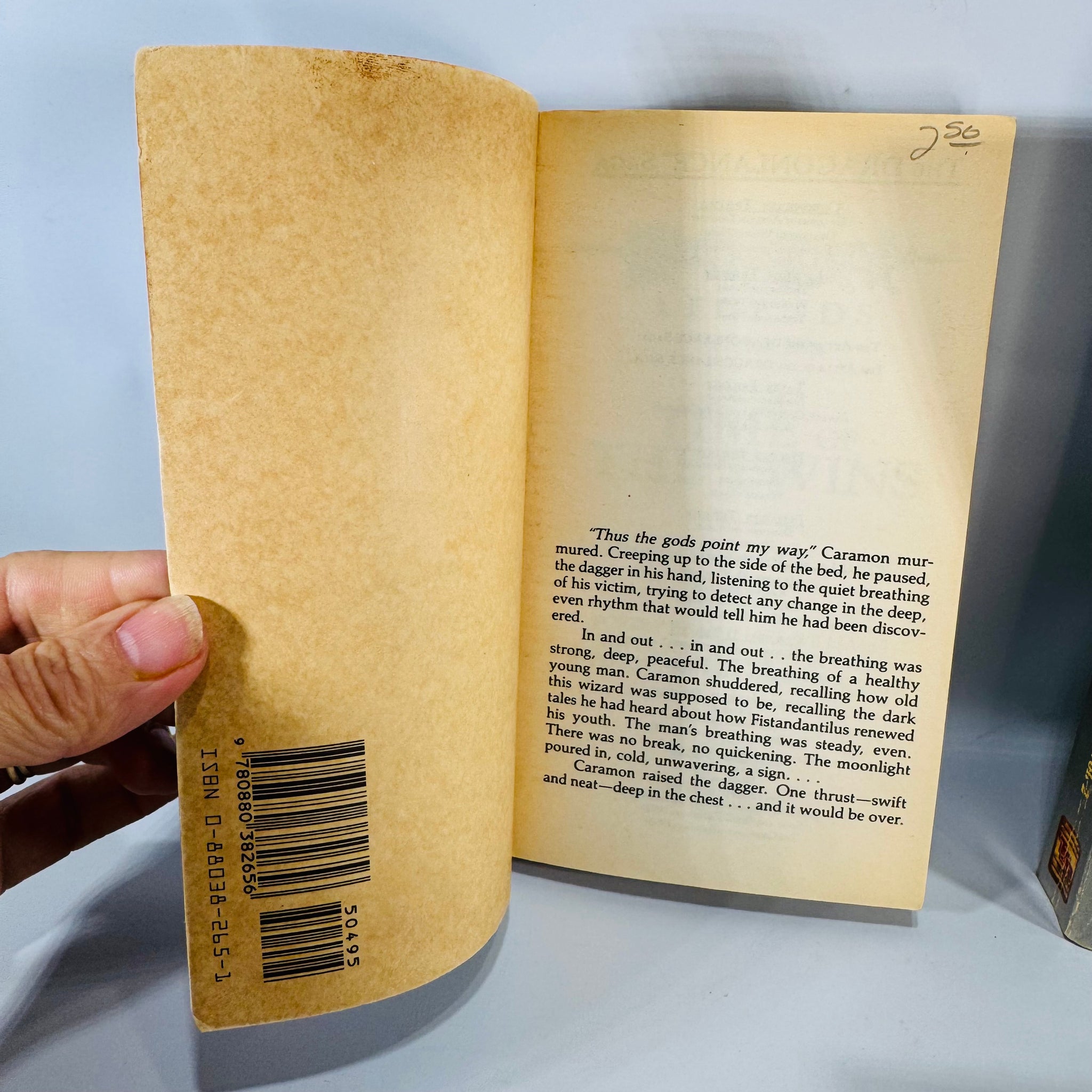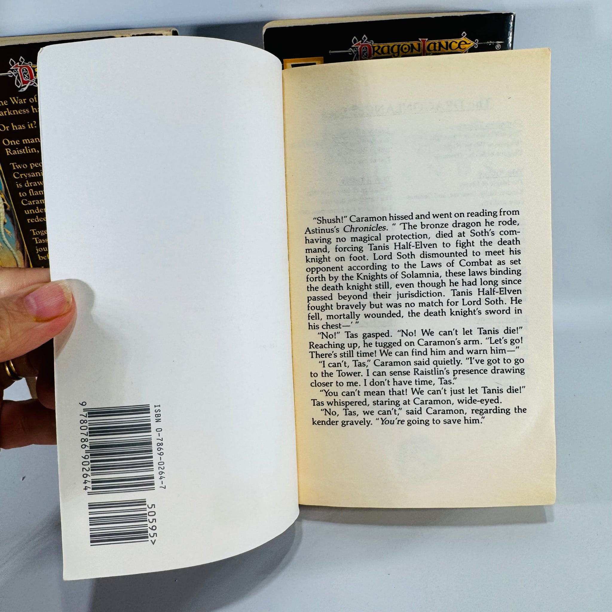 For Dragonlance readers, this is one of the defining arcs of the saga. For collectors, it is a story-rich paperback set with classic fantasy cover art and the kind of reader wear that proves these books were loved. Not a pristine collector’s set, but a confident, complete trilogy with real shelf charm.