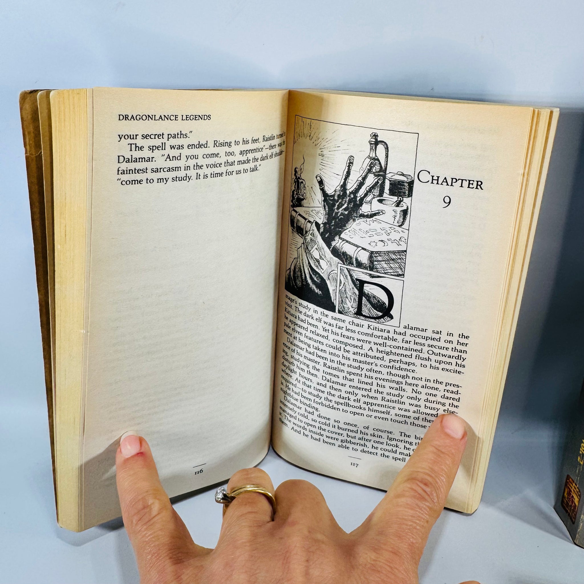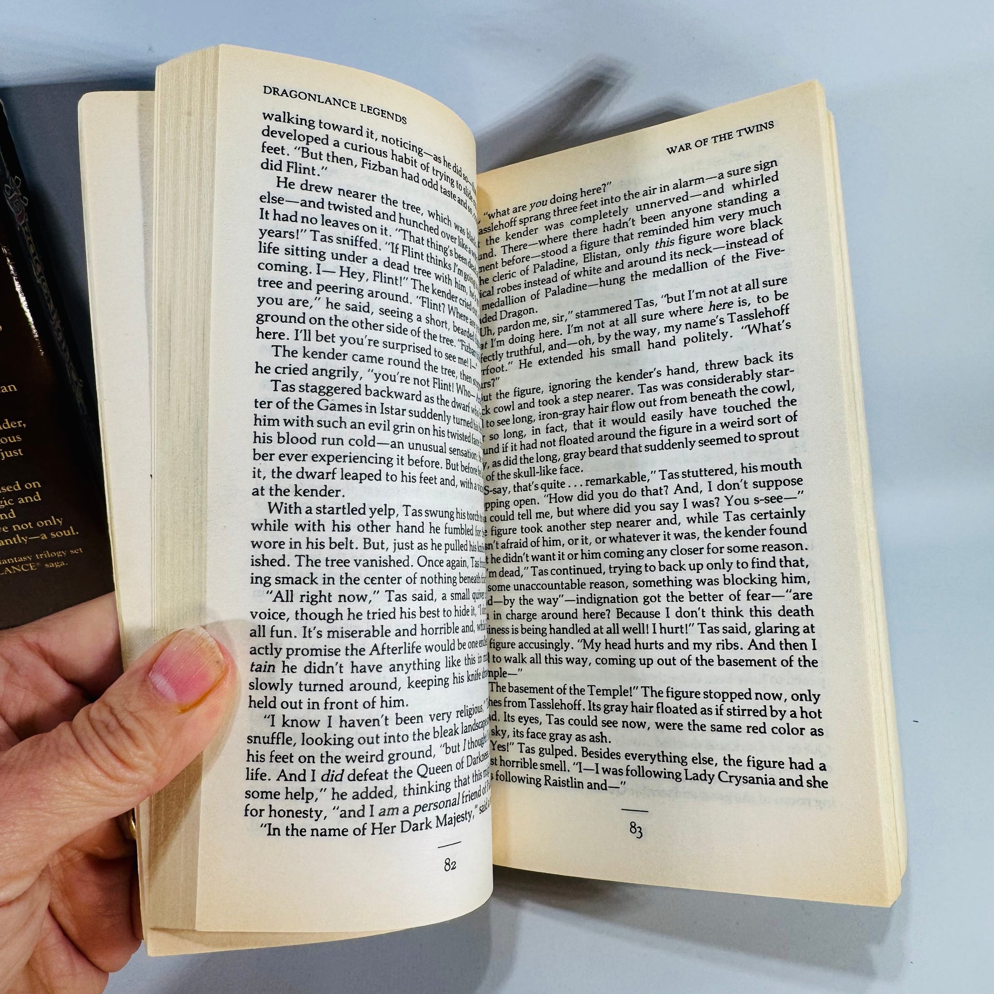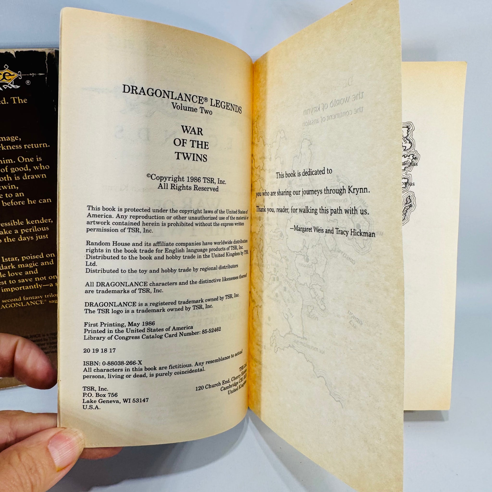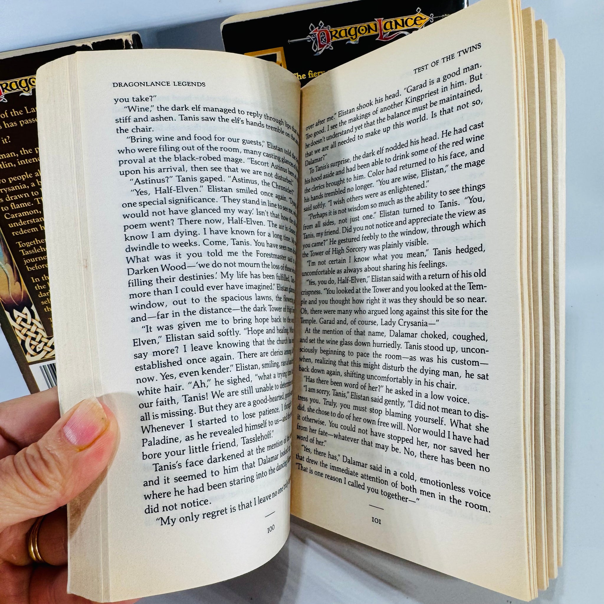 A classic Dragonlance Legends bundle for fantasy readers, TSR collectors, and 1980s paperback shelf builders. This 3-book paperback set includes all three volumes of the Dragonlance Legends trilogy by Margaret Weis and Tracy Hickman: