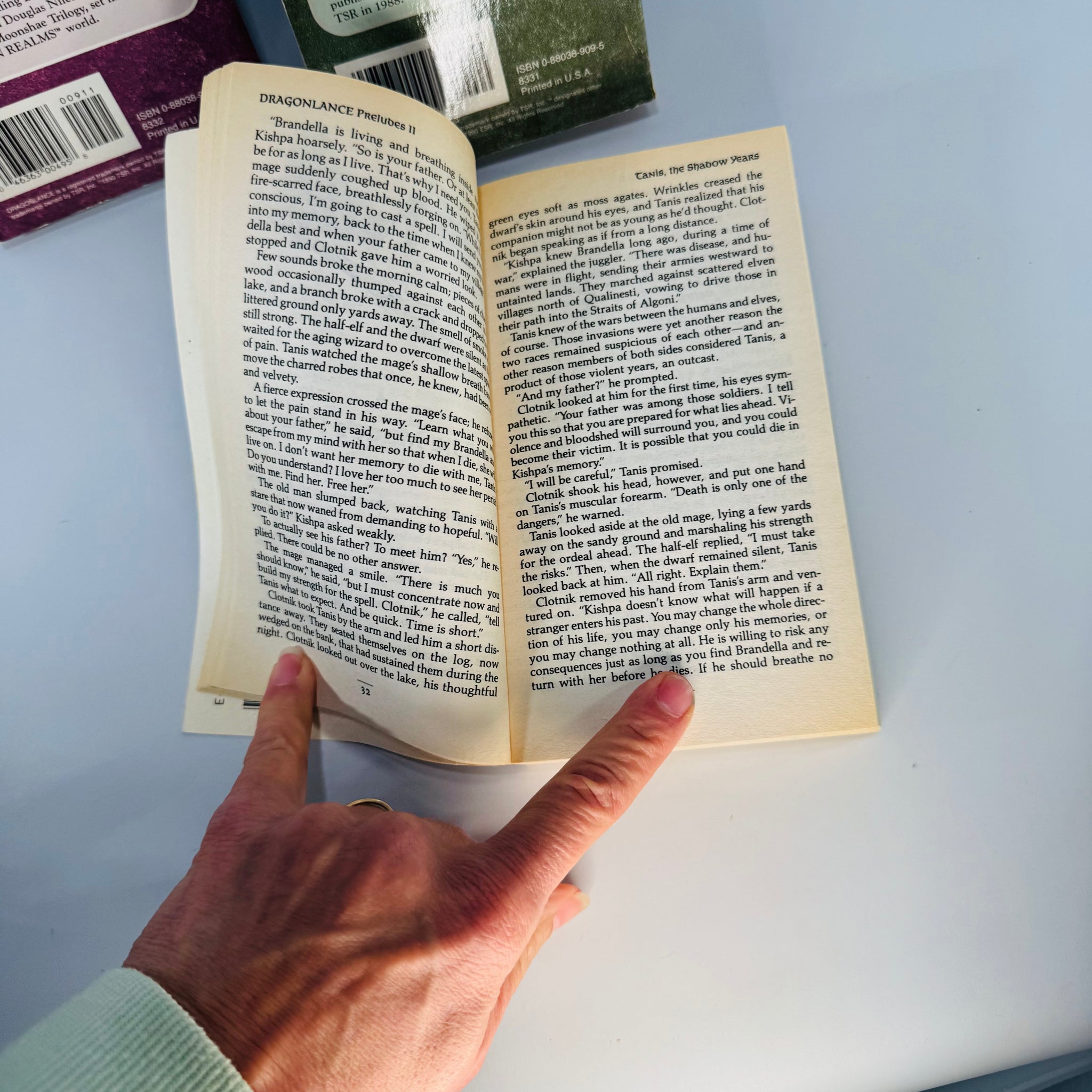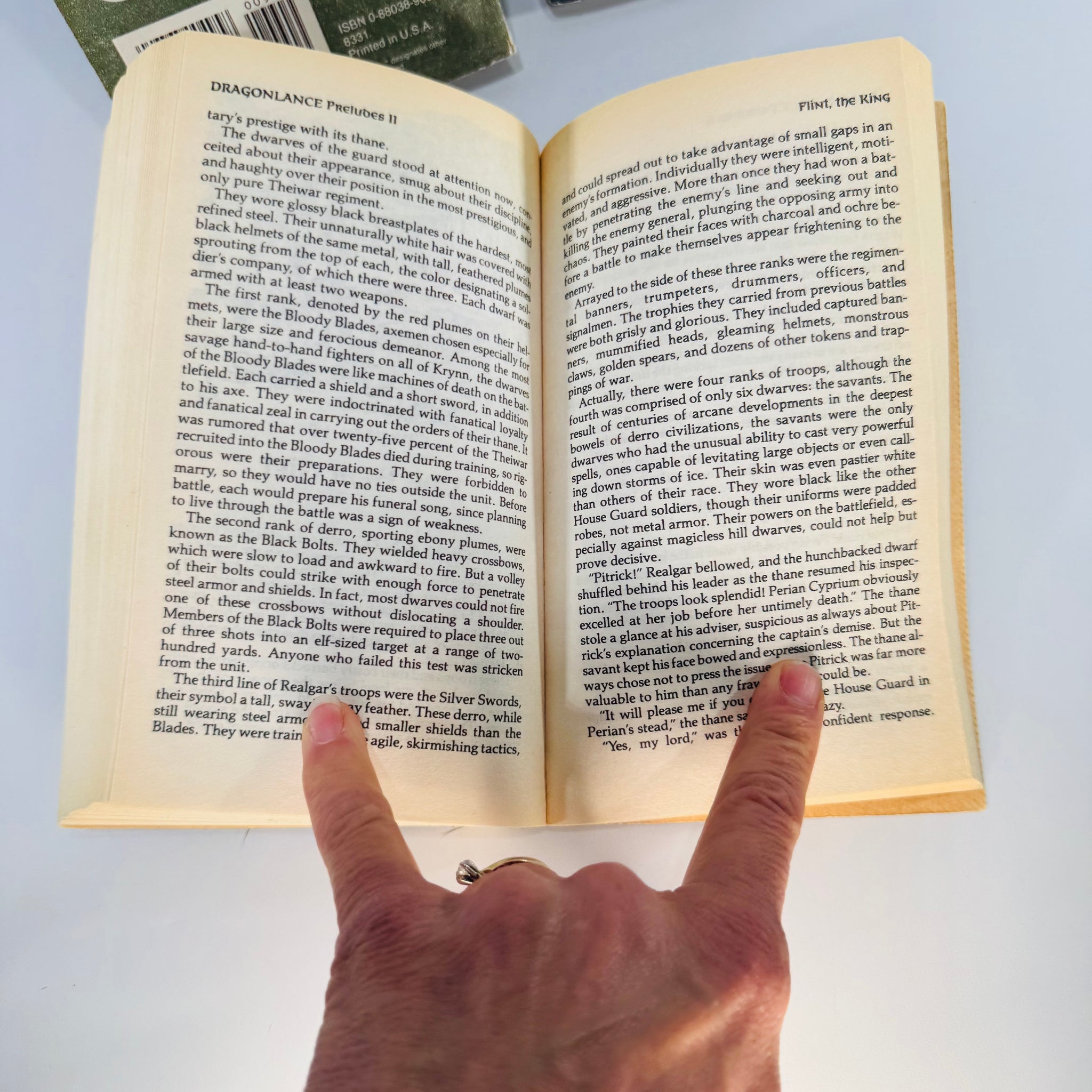 This set offers both reading value and collector value. You get the full three-book Preludes II run in matching 1990 TSR paperbacks, with coordinated covers and the character backstory focus that Dragonlance readers usually look for.