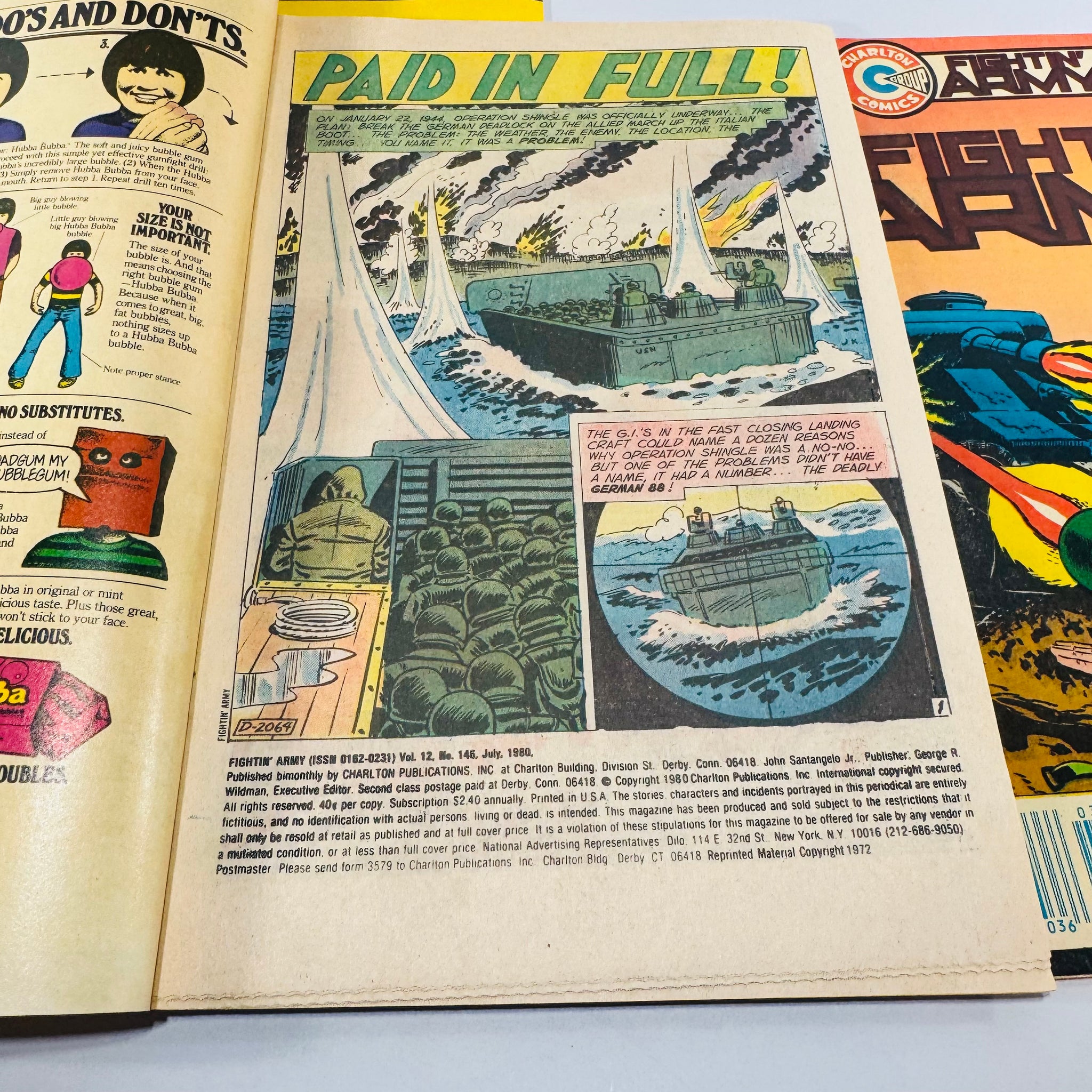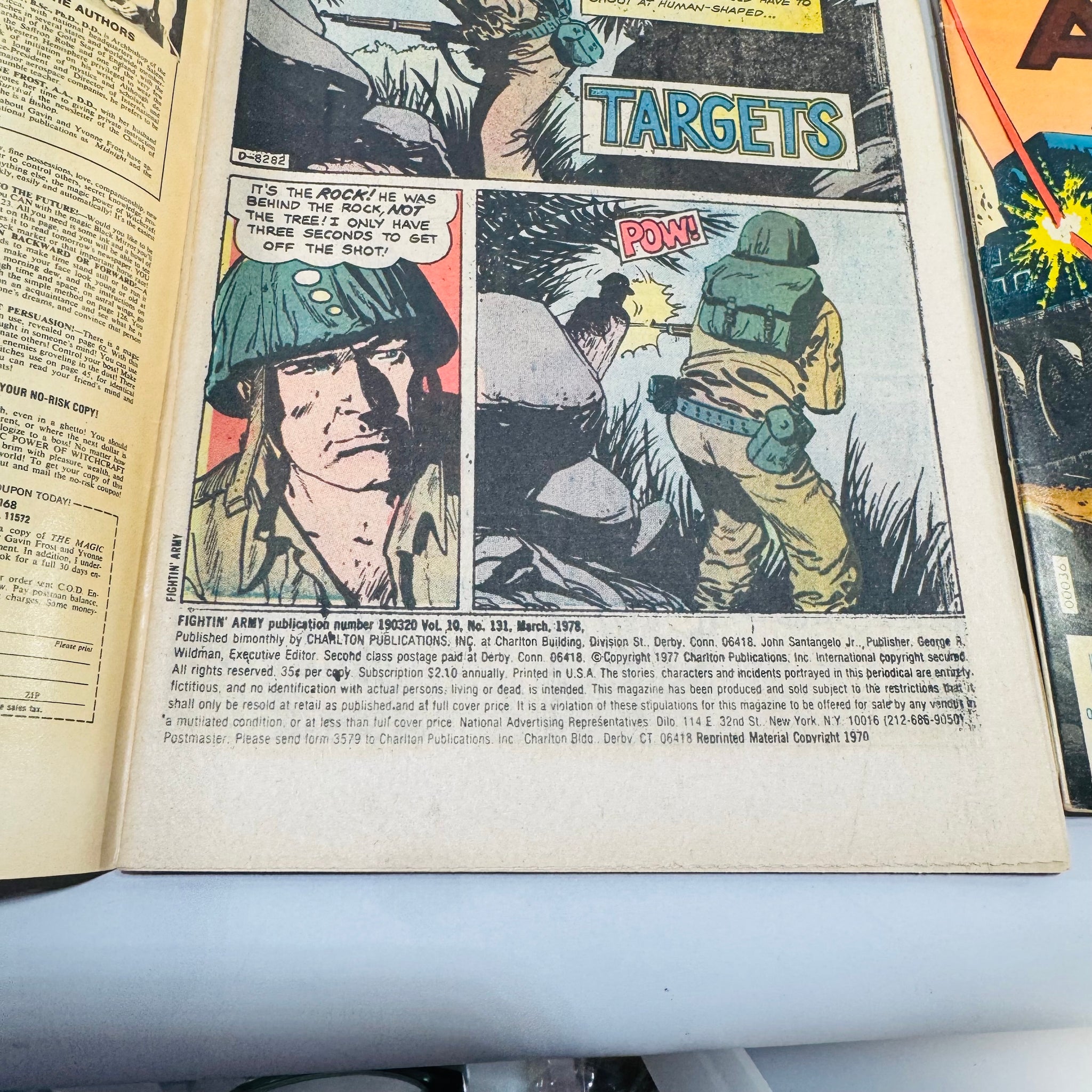 This lot is especially appealing because it sits in that scrappy Charlton war-comics lane collectors know well: bright covers, tough battlefield scenes, mail-order ad backs, and late-run Fightin’ Army issues that feel more newsstand than prestige.
