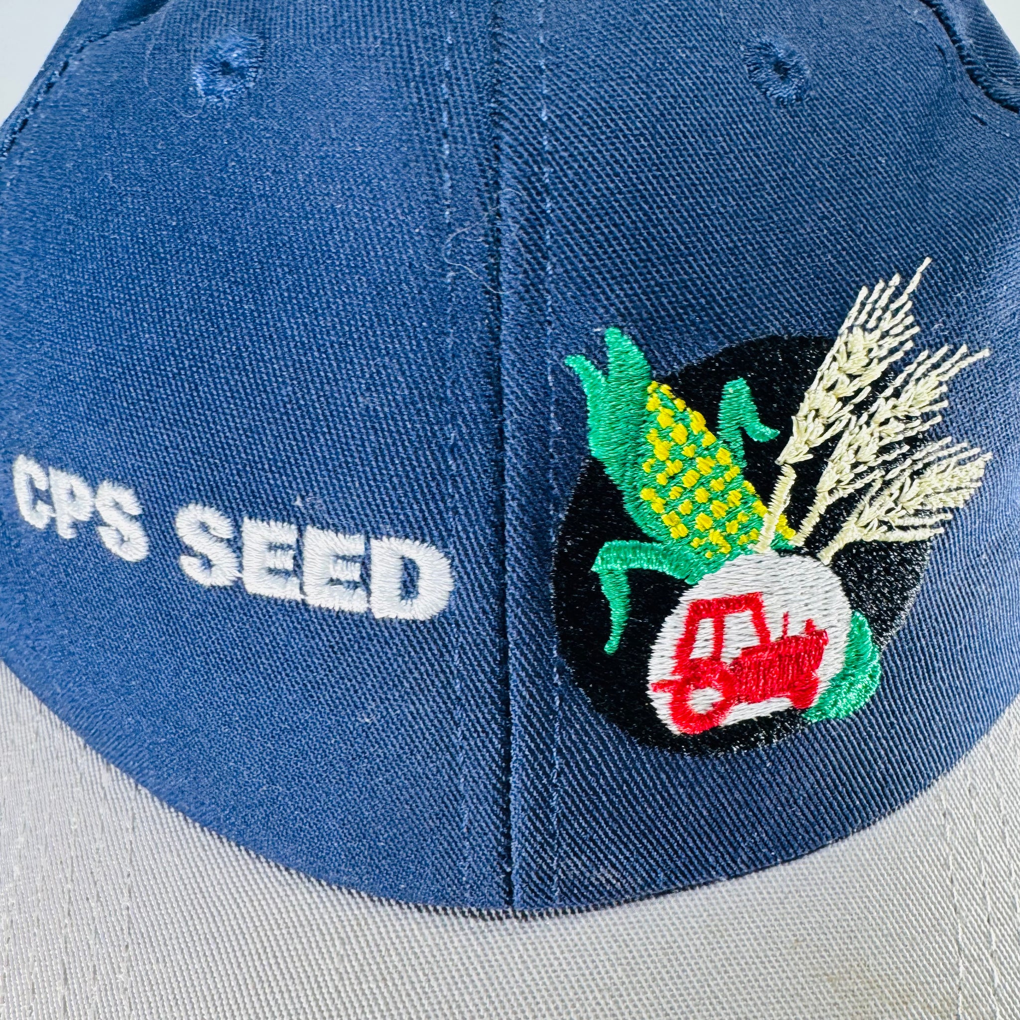 • Embroidery is strong and readable: “CPS SEED” text + colorful corn/tractor/wheat graphic