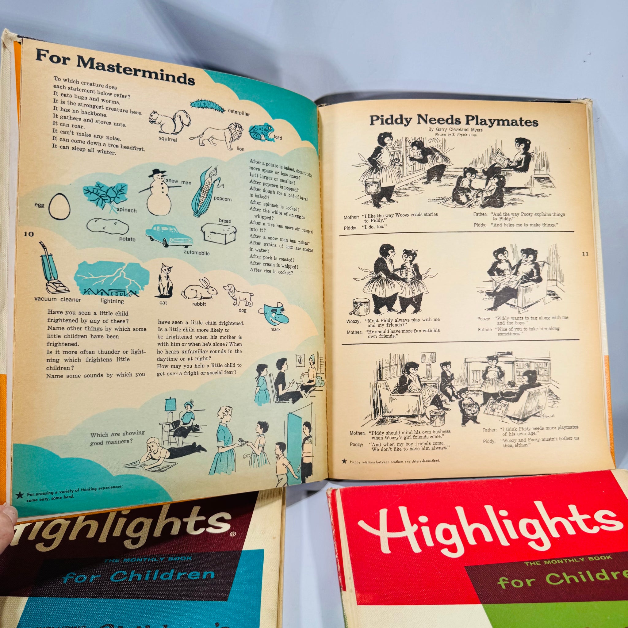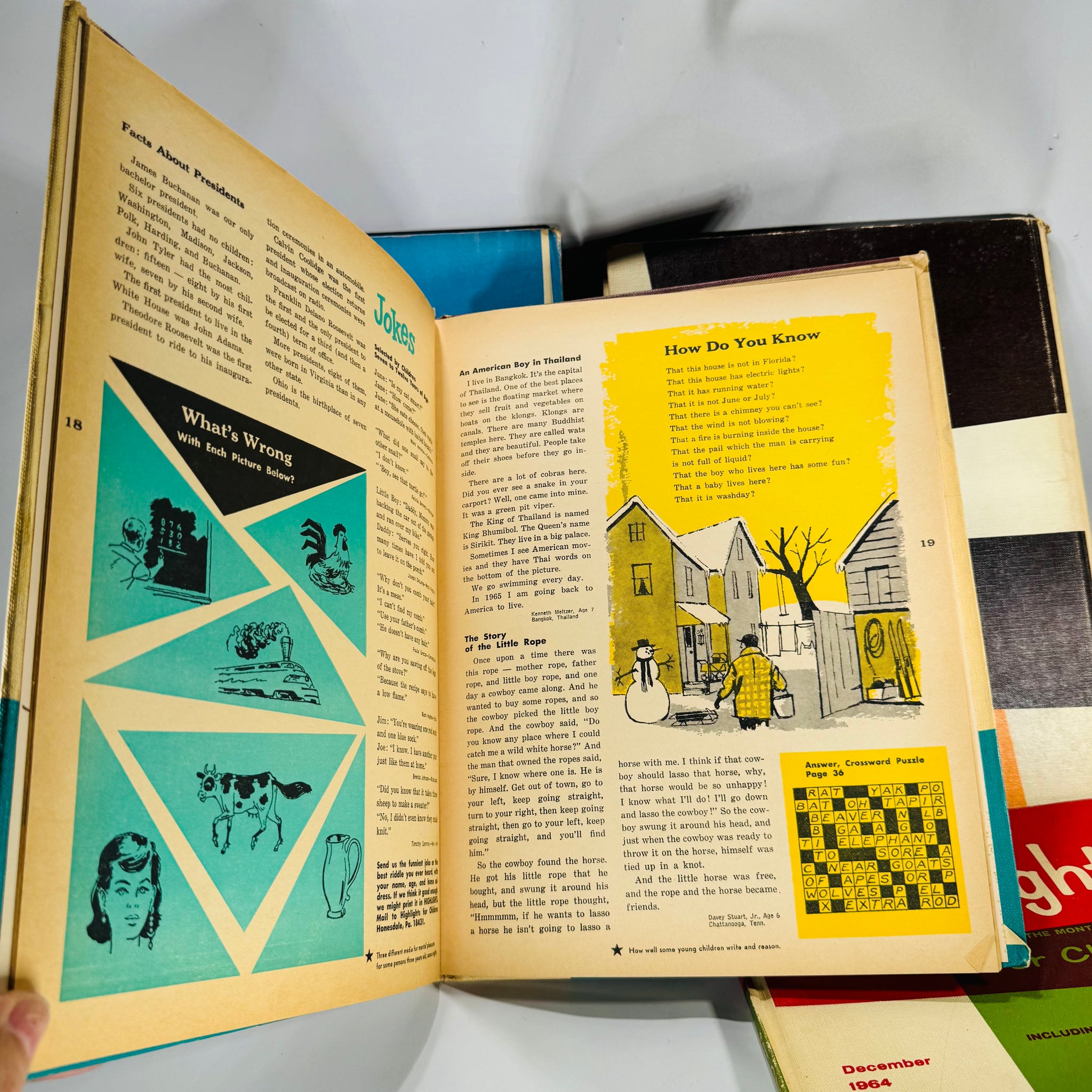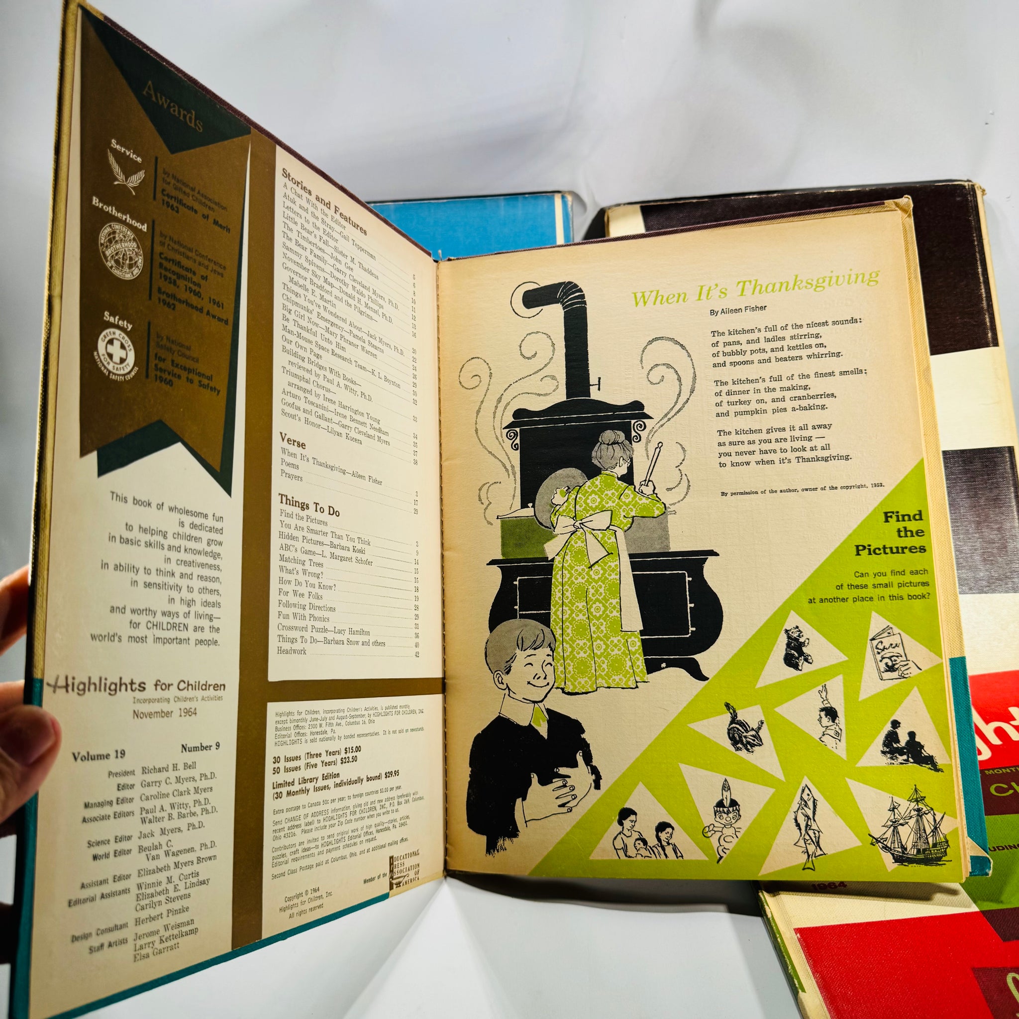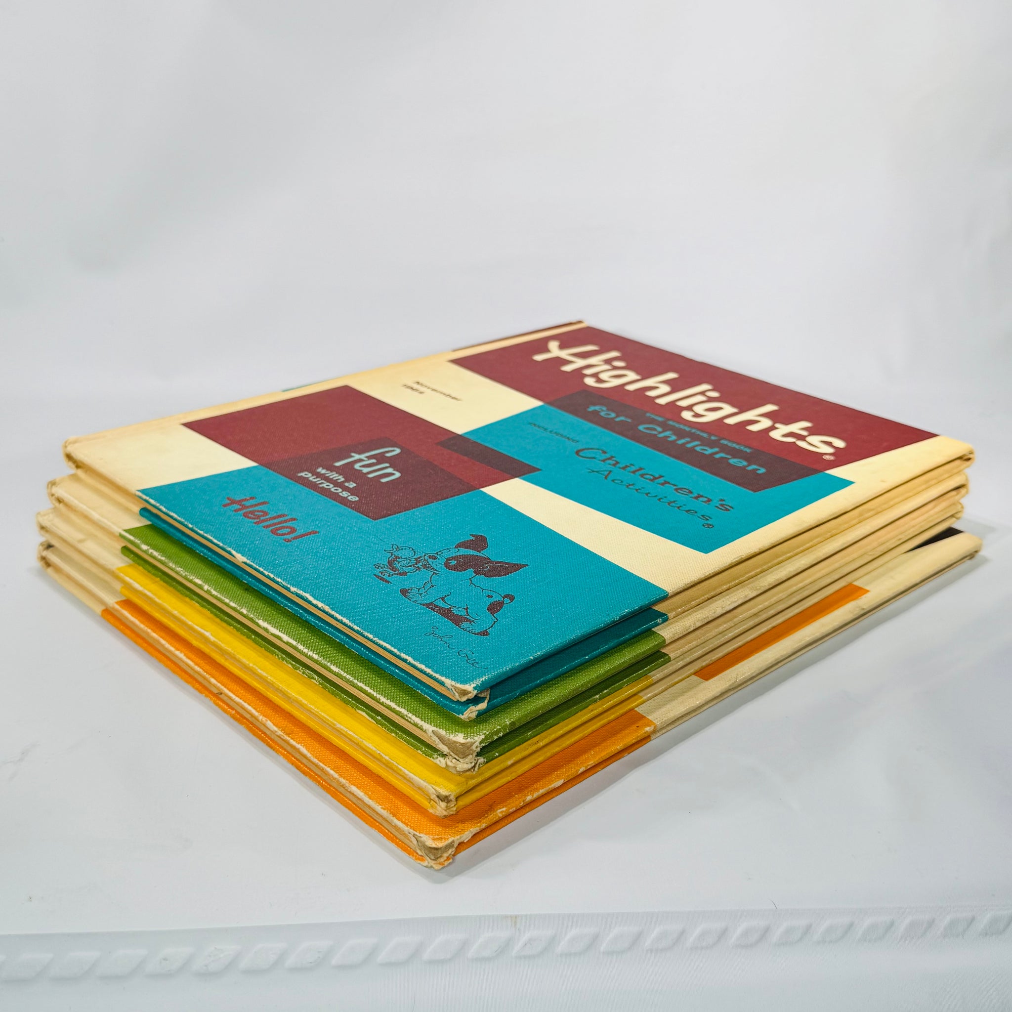 This curated bundle of 1964 Highlights for Children hardcover books captures the bold color, playful typography, and educational optimism of mid-century America. Best known for its atomic-era graphic design and charming illustrations, Highlights has become a favorite among decorators and nostalgia collectors alike.