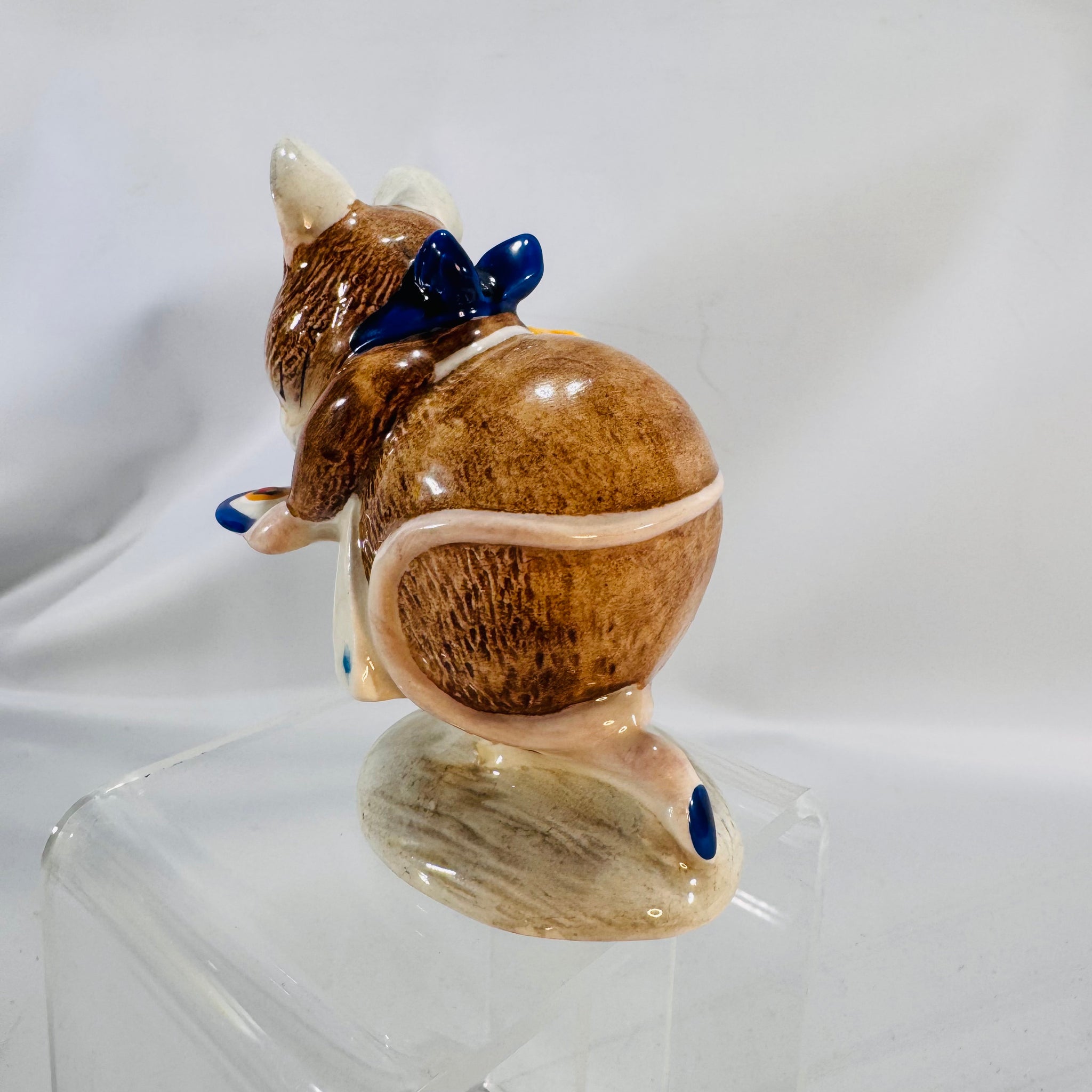 This Beswick figure captures a beloved Beatrix Potter character with warm color and a glossy finish. Moreover, the verified Beswick backstamp places it before the Royal Albert era—helpful for collectors. It’s small, shelf-friendly, and pairs well with vintage children’s books. Finally, it arrives packed with care, ready to gift or display.