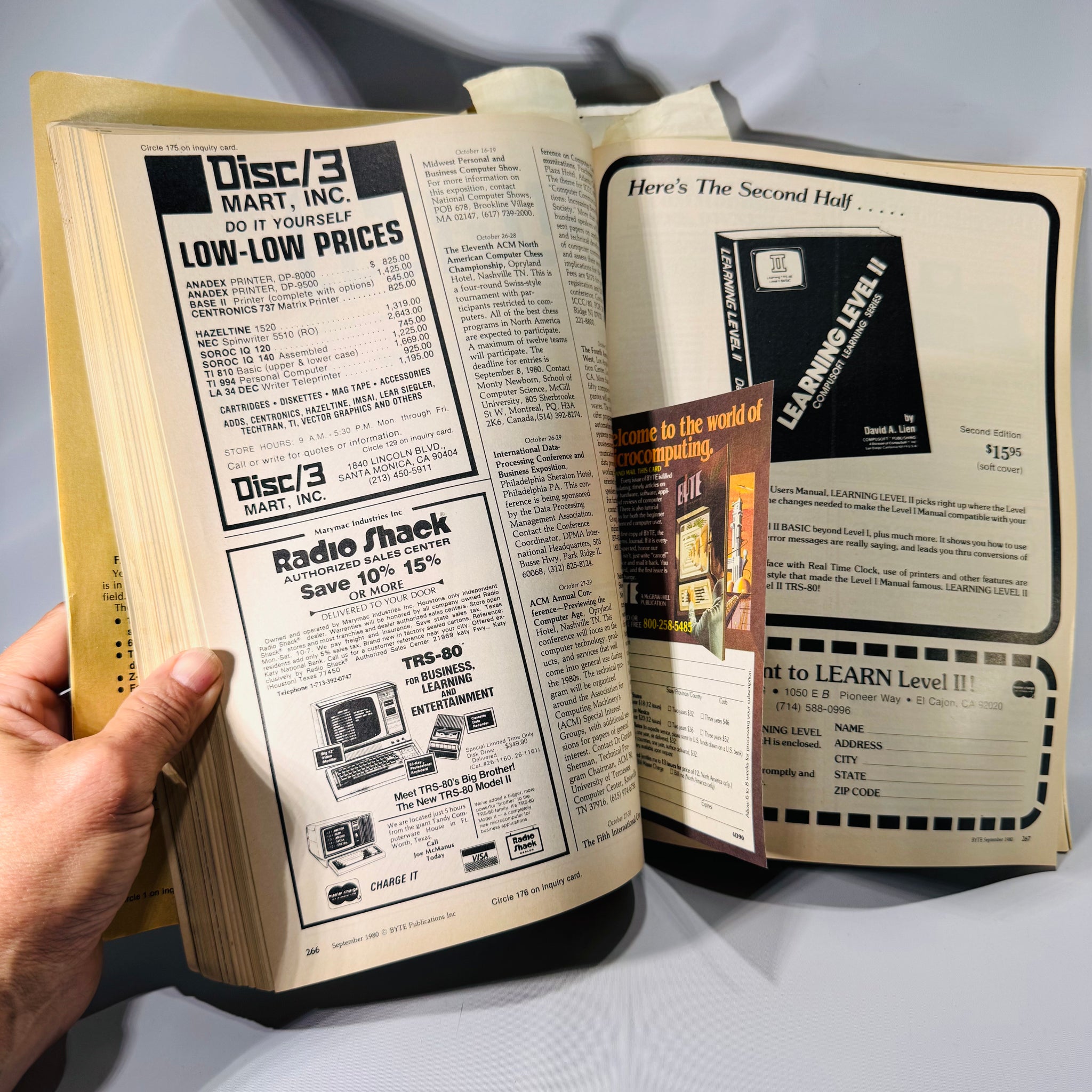 For collectors of vintage tech, this pair of BYTE magazines from 1980 delivers a slice of computing history—ads, articles, and software code from when personal computing was still new. This lot includes the June 1980 (Inter Computer Communications) and September 1980 (Homebrewing) issues.