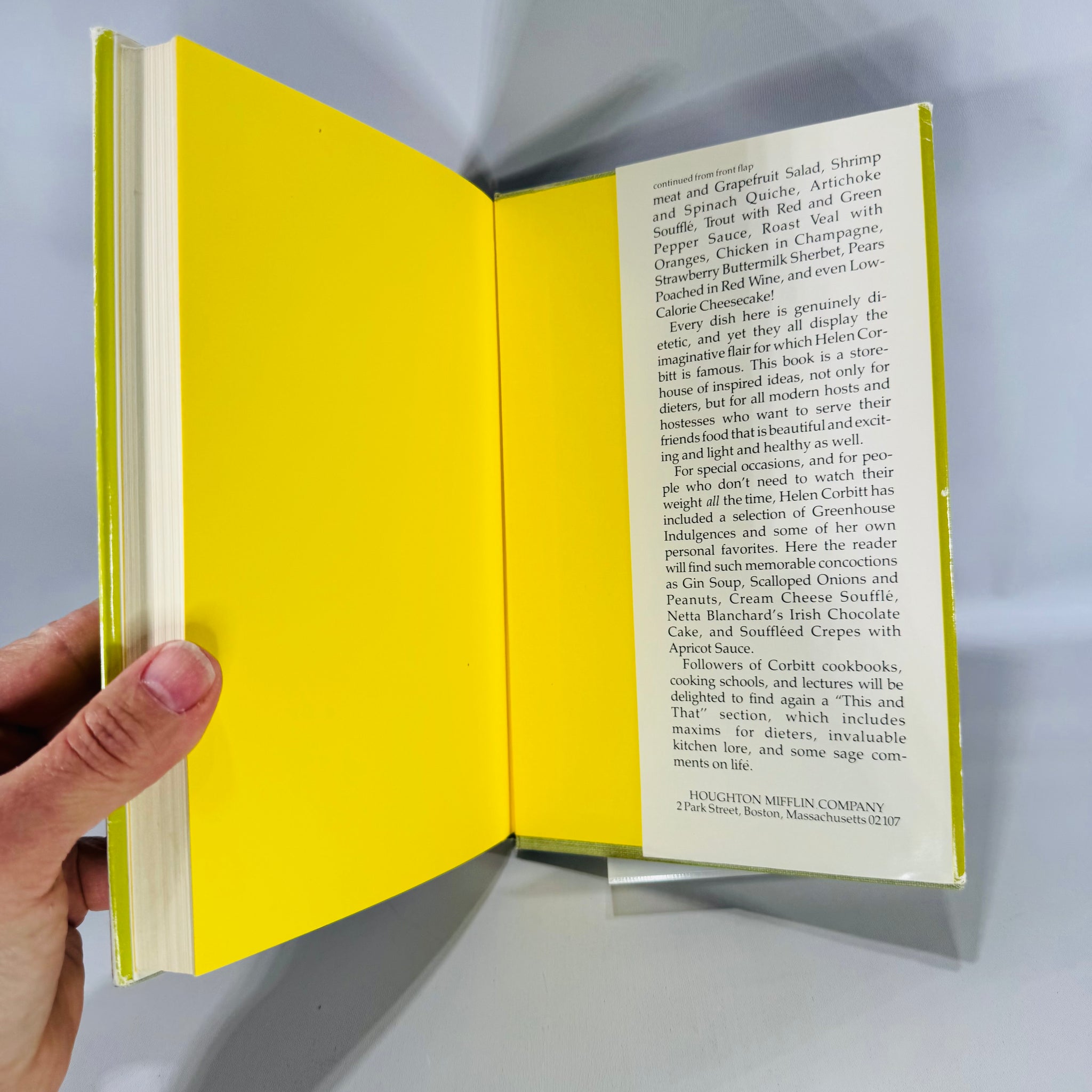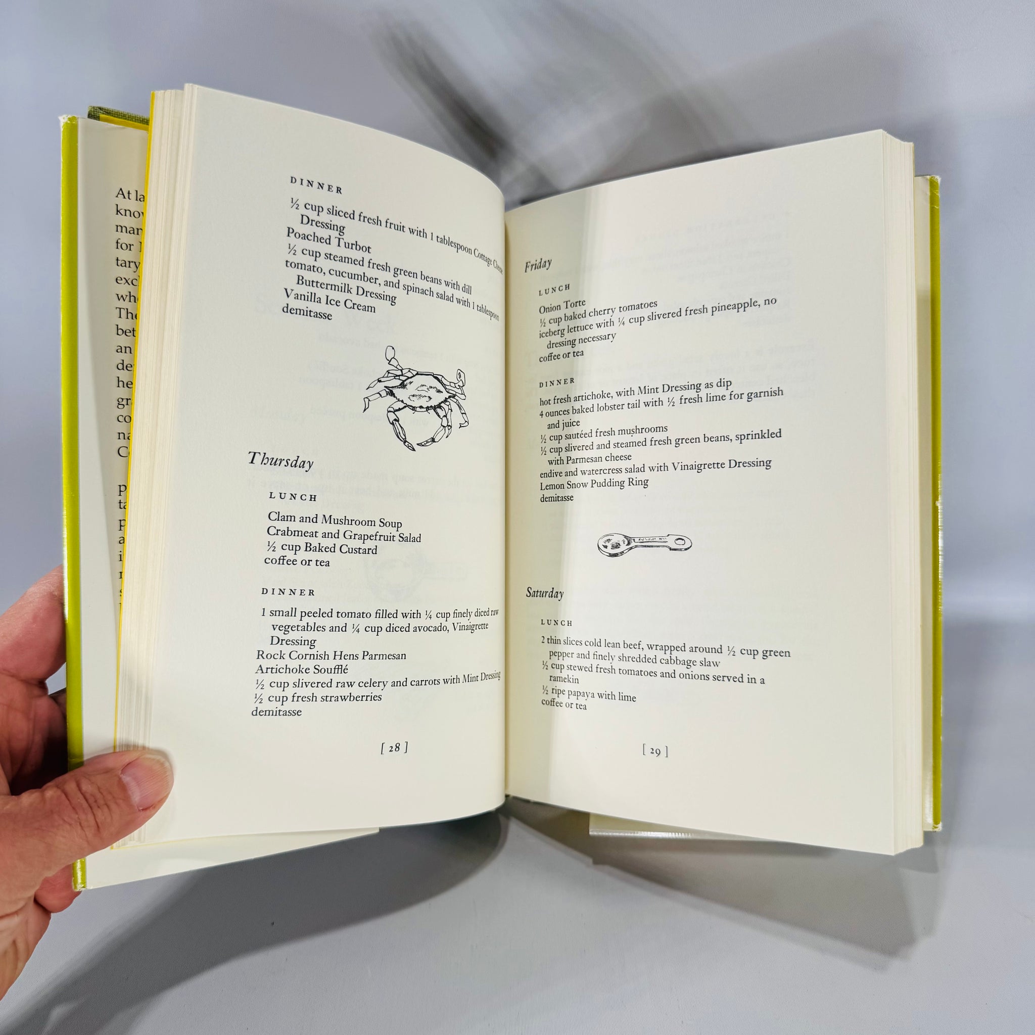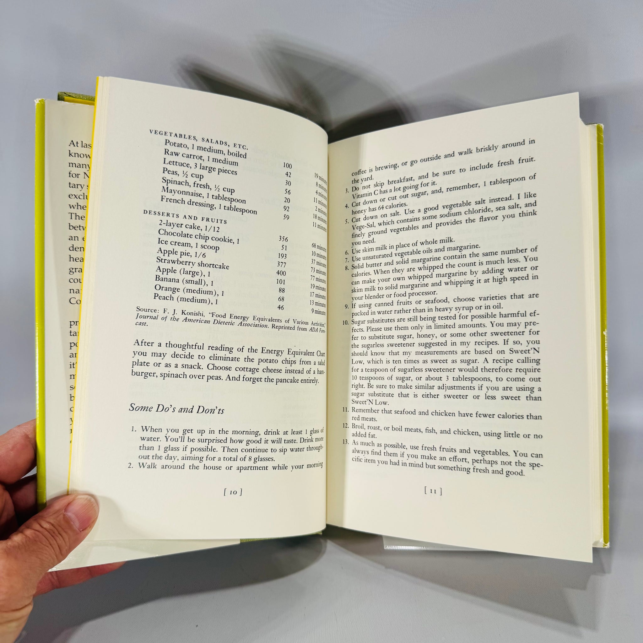 This is a vintage Health & Diet Cooking (Vintage Cookbook) classic from famed chef Helen Corbitt—built around the elegant, slimming menus served at The Greenhouse, a Texas health spa. It reads like a time capsule of late-70s “eat lighter, live brighter” dining: fresh vegetables, thoughtful portions, and recipes meant to feel indulgent while staying measured. Inside you’ll find a structured, day-by-day plan plus recipes with calorie guidance and charming black-and-white illustrations. Photo-verified details below—ready for your kitchen shelf (and your cookbook collection).