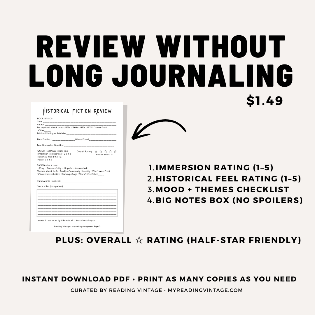 A minimalist printable you’ll actually use—designed for readers who love immersive historical fiction and want an easy way to remember what made a book feel like its era.
