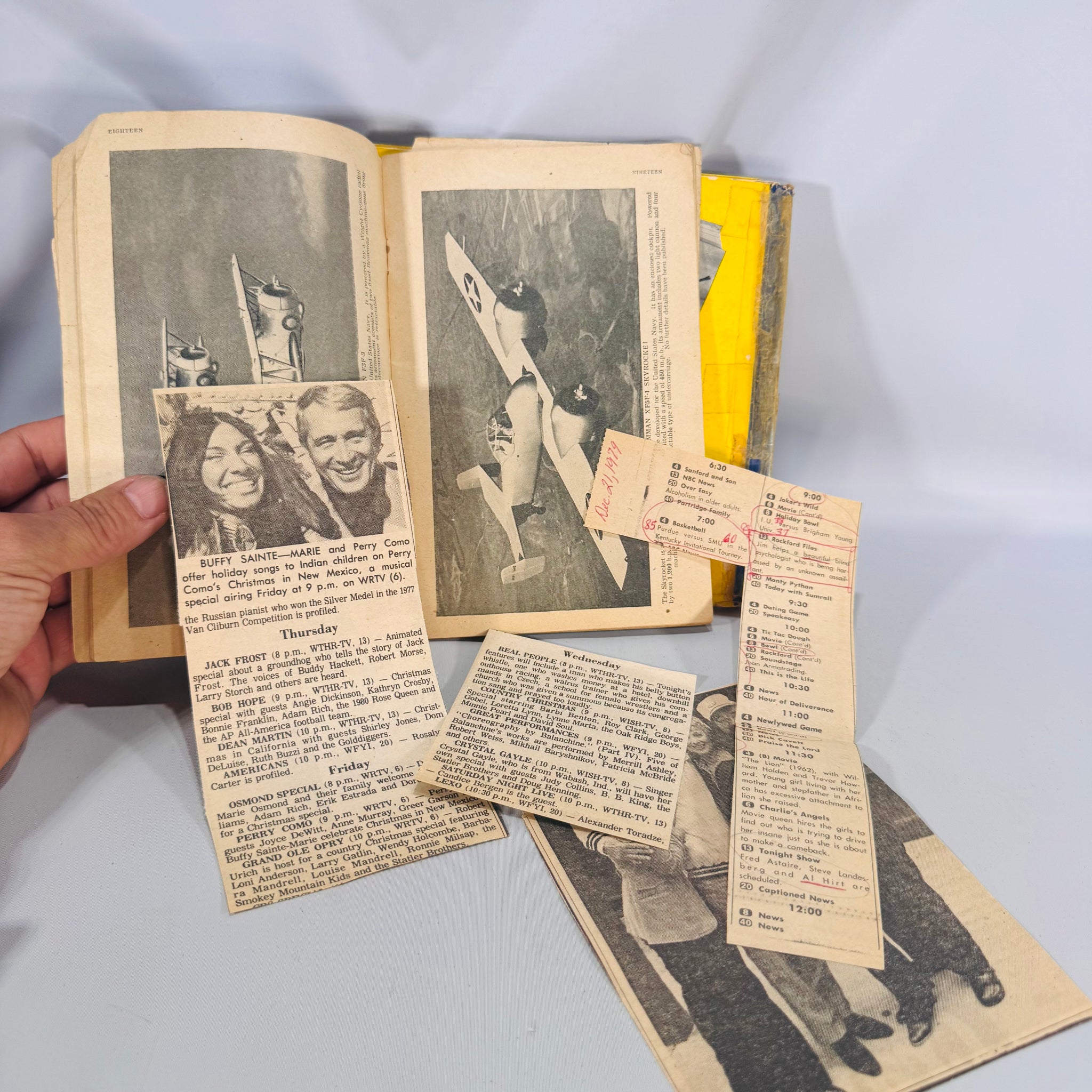• Extras: Found ephemera tucked in Wings (vintage news clippings/TV listings) included as found.