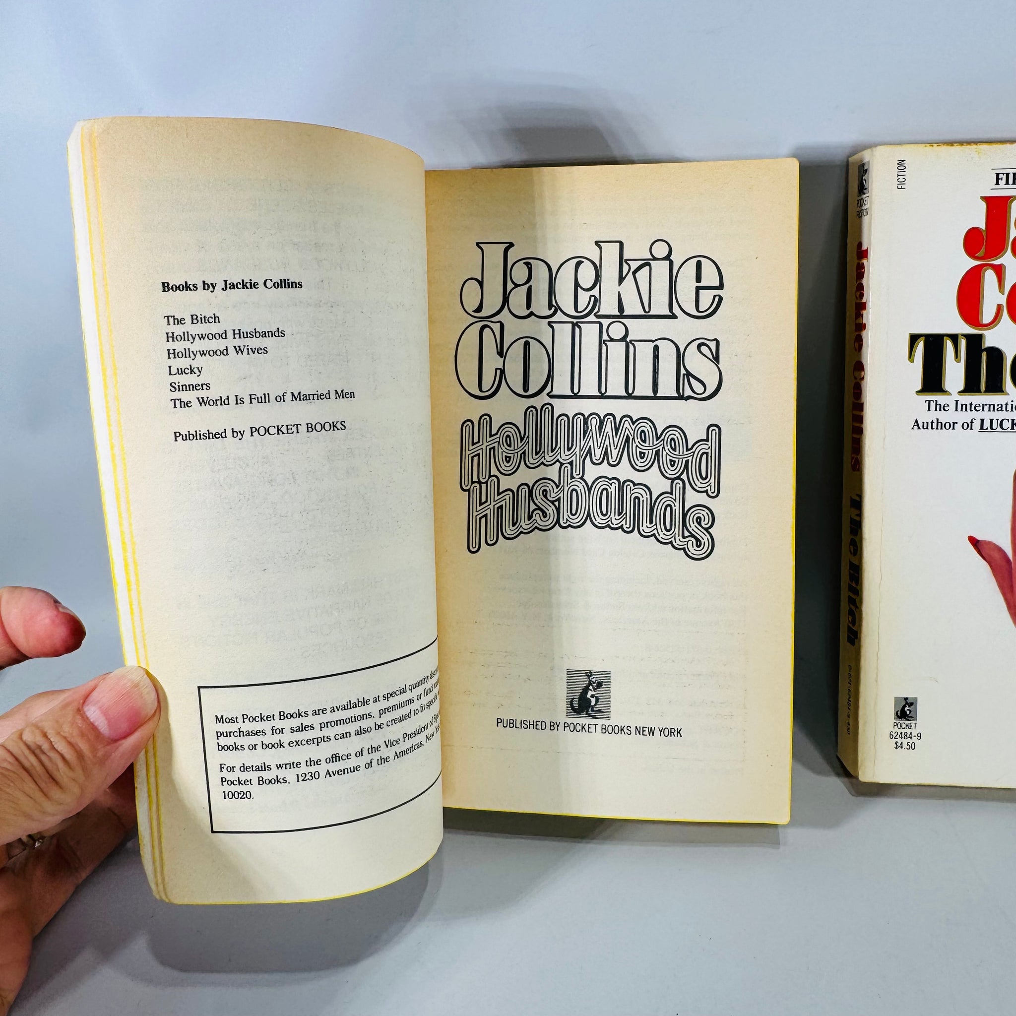 Vintage Jackie Collins Paperback Bundle — The Bitch (1984) & Hollywood Husbands (1987) — Glamour, Scandal & Fame, Romantic Suspense / Celebrity Drama