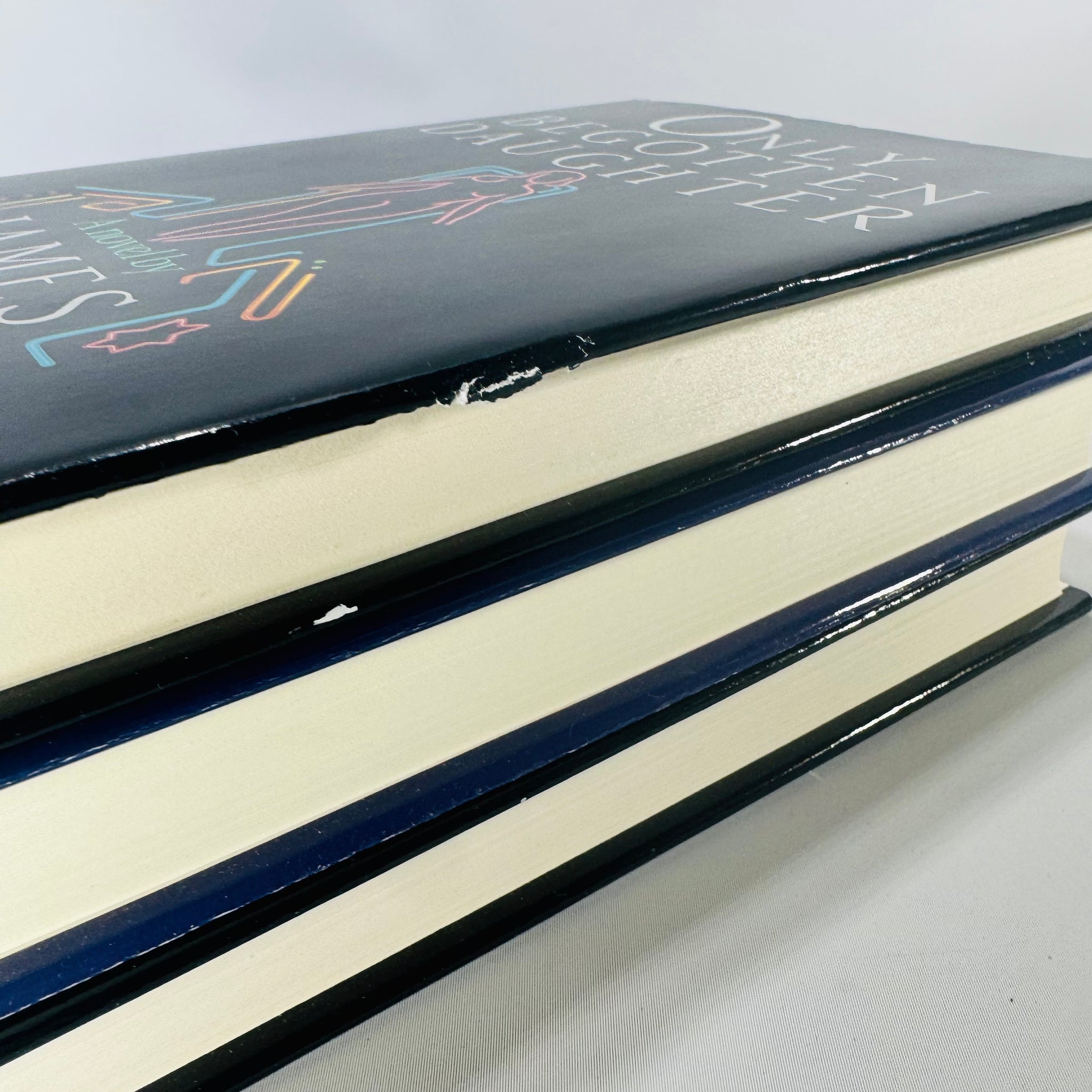 ∙ Dust jackets show light shelf wear; small edge chipping/creasing visible in close-ups (most noticeable along the top edge on Only Begotten Daughter)