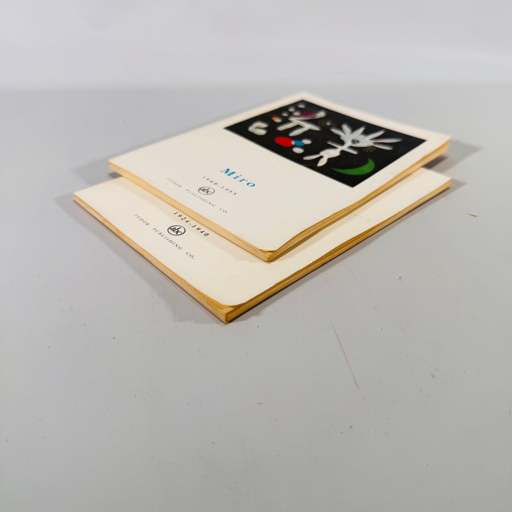 This two-volume vintage art book set explores the imaginative works of Joan Miró from 1924–1955. Each book in the series—Miro 1924–1940 and Miro 1940–1955—was authored by Guy Weelen and published by Tudor Publishing Co. in 1960.