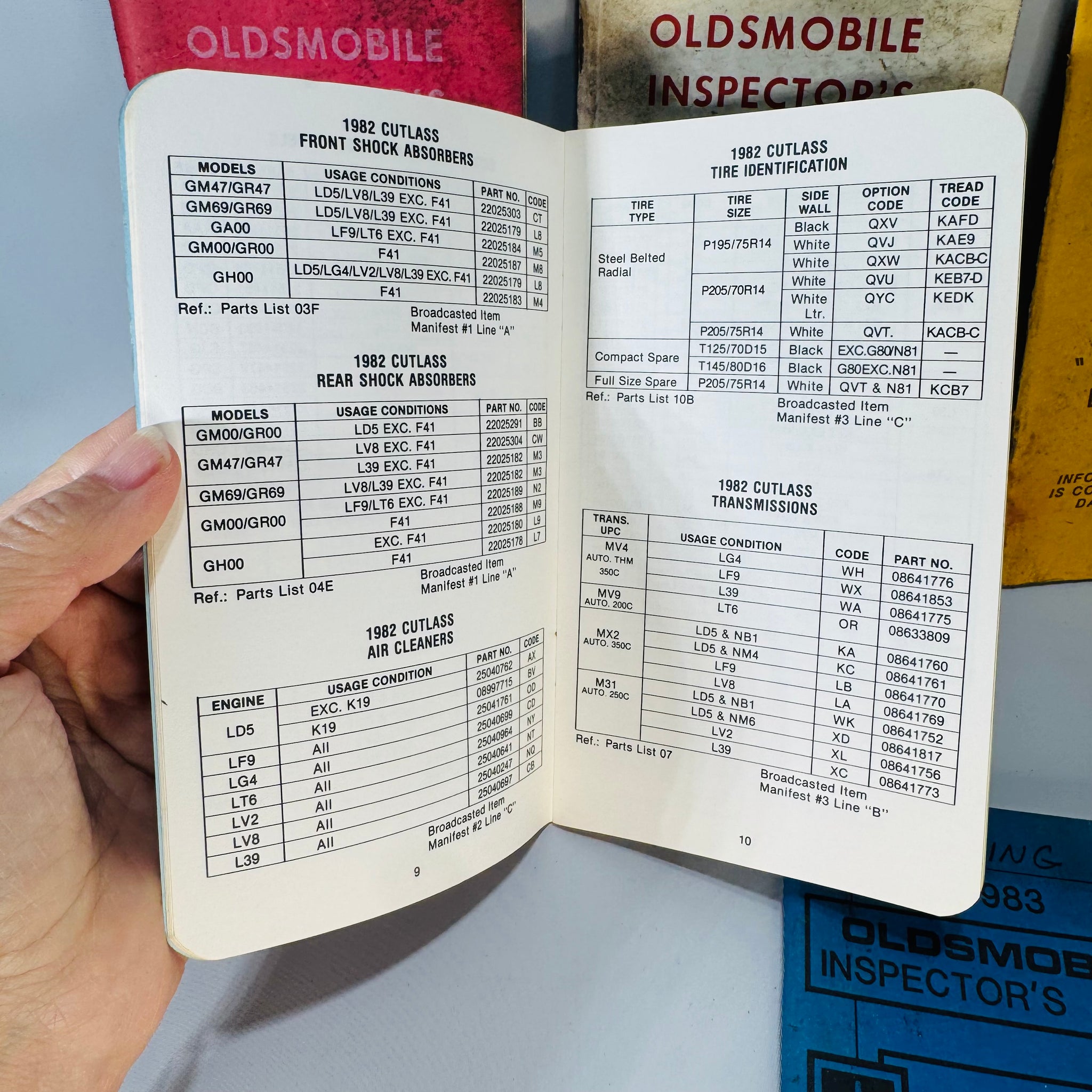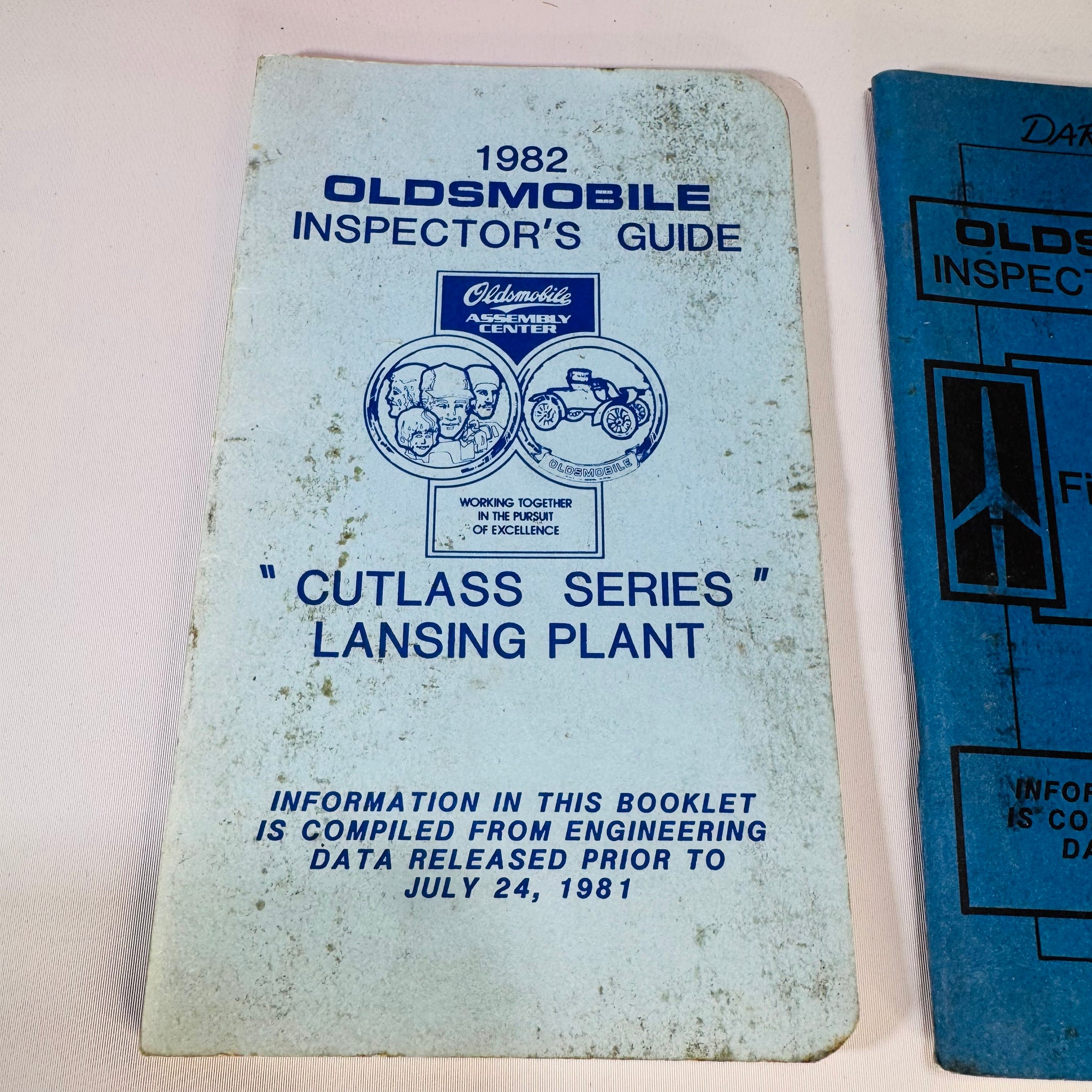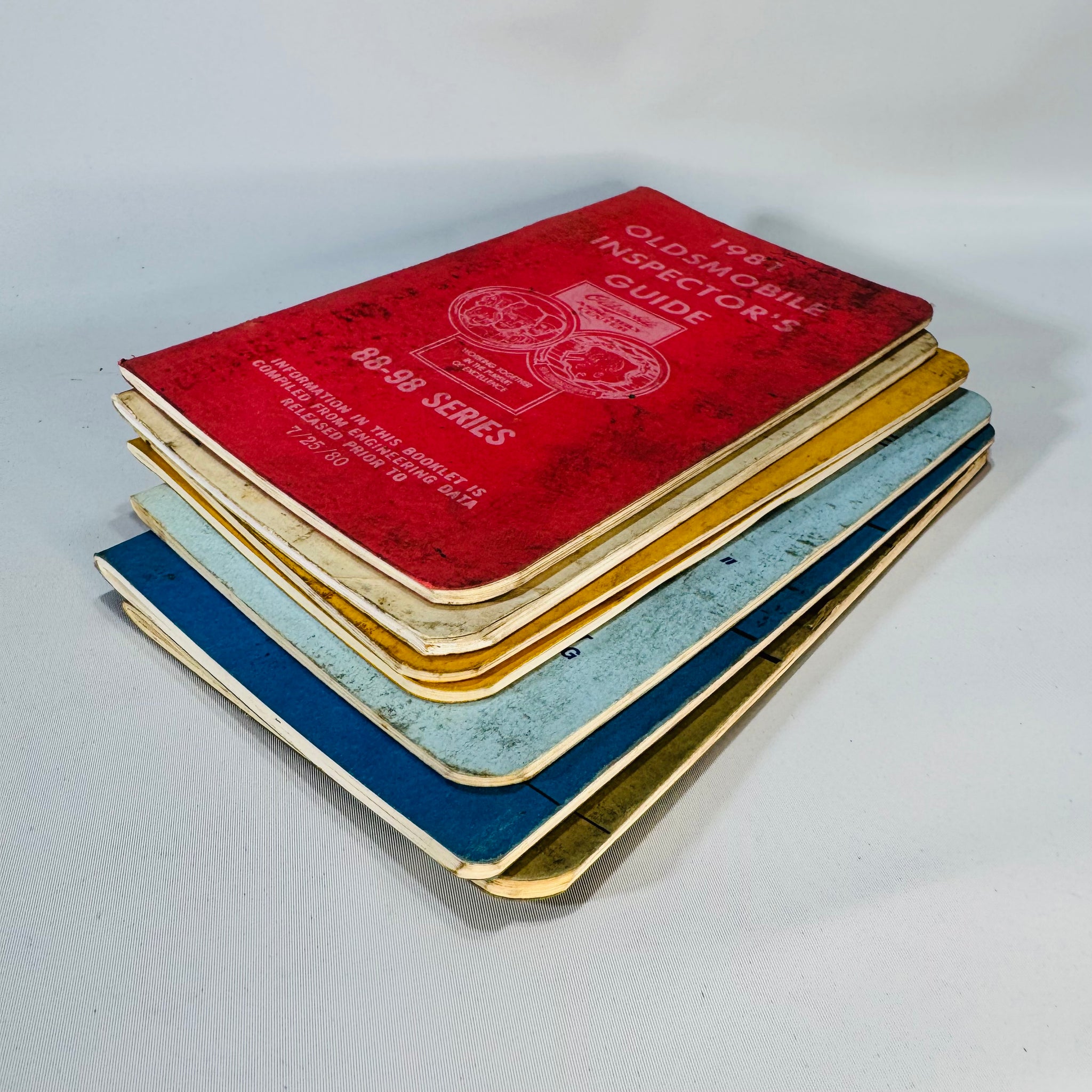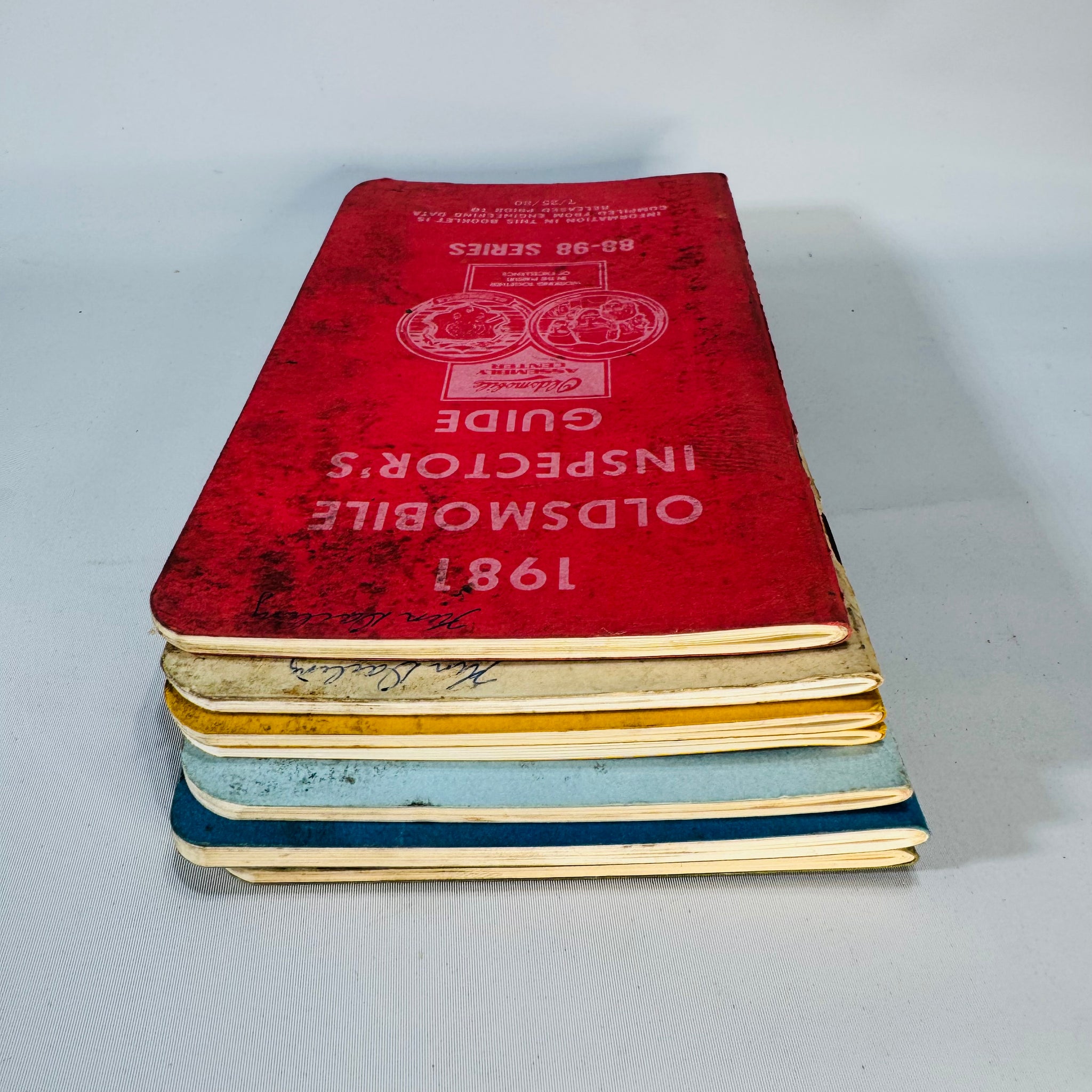 A genuine garage-find set of Oldsmobile Inspector’s Guide booklets—straight from the era when Lansing-built Cutlasses ruled the roads.