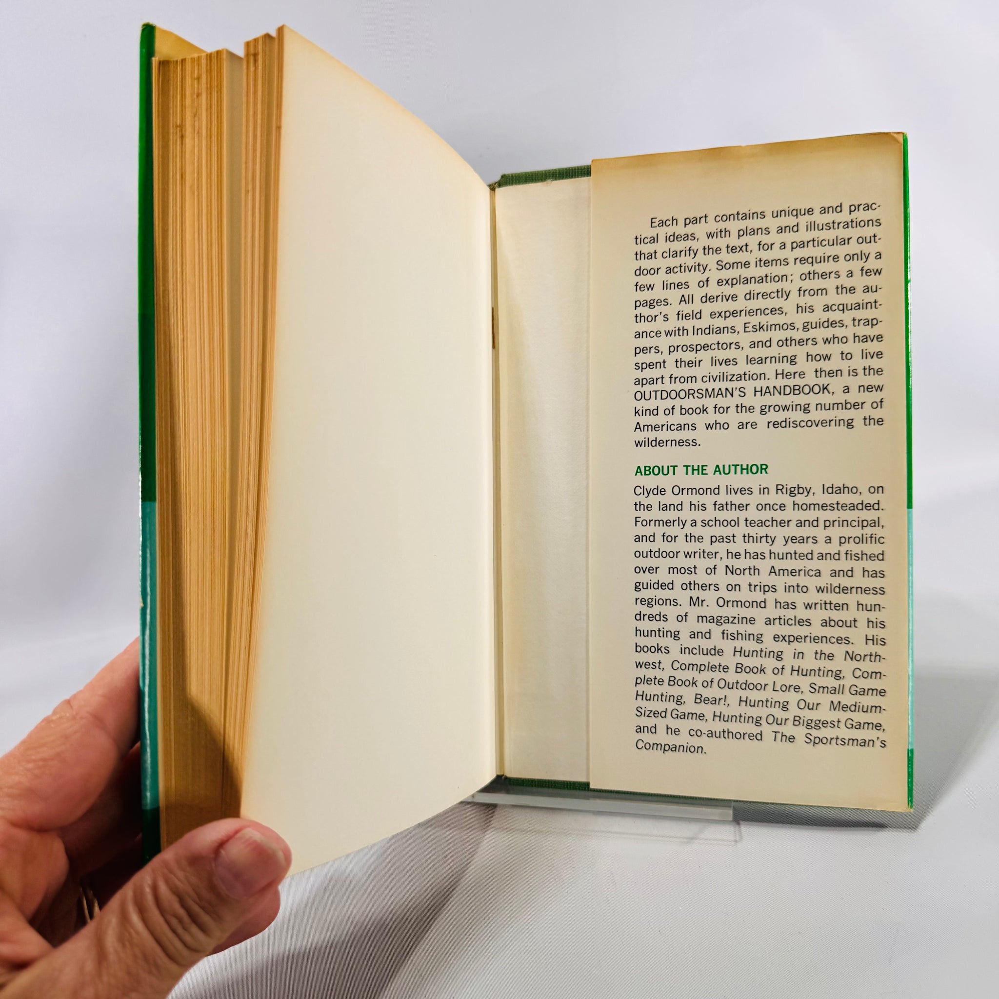 This 1975 edition of Outdoorsman's Handbook by Clyde Ormond is more than a book—it's a survival companion packed with illustrated step-by-step guides. Learn to pluck game birds, weigh fish with string, build rustic shelters, trench tents, and craft gear using natural materials.