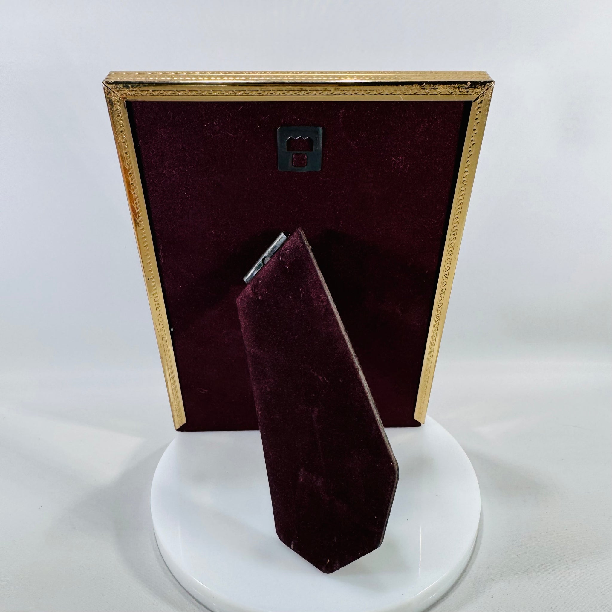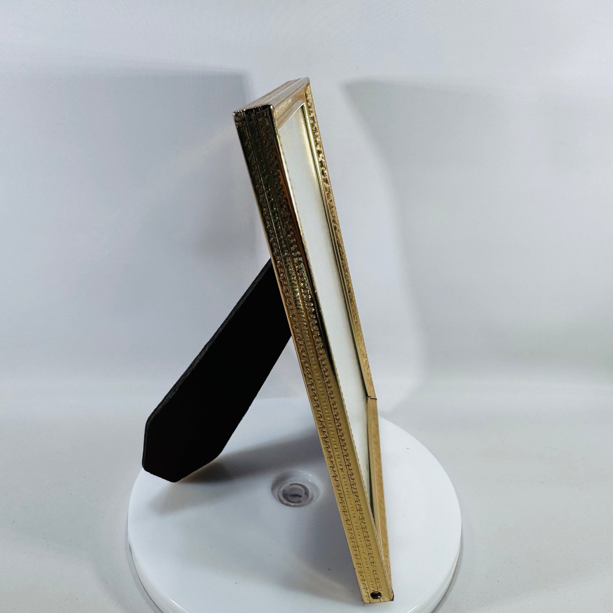 Add a warm vintage touch to your shelf, mantel, or desk with this classic 5x7 gold-tone metal photo frame. It features a textured/beaded edge detail and a rear easel stand for easy tabletop display.