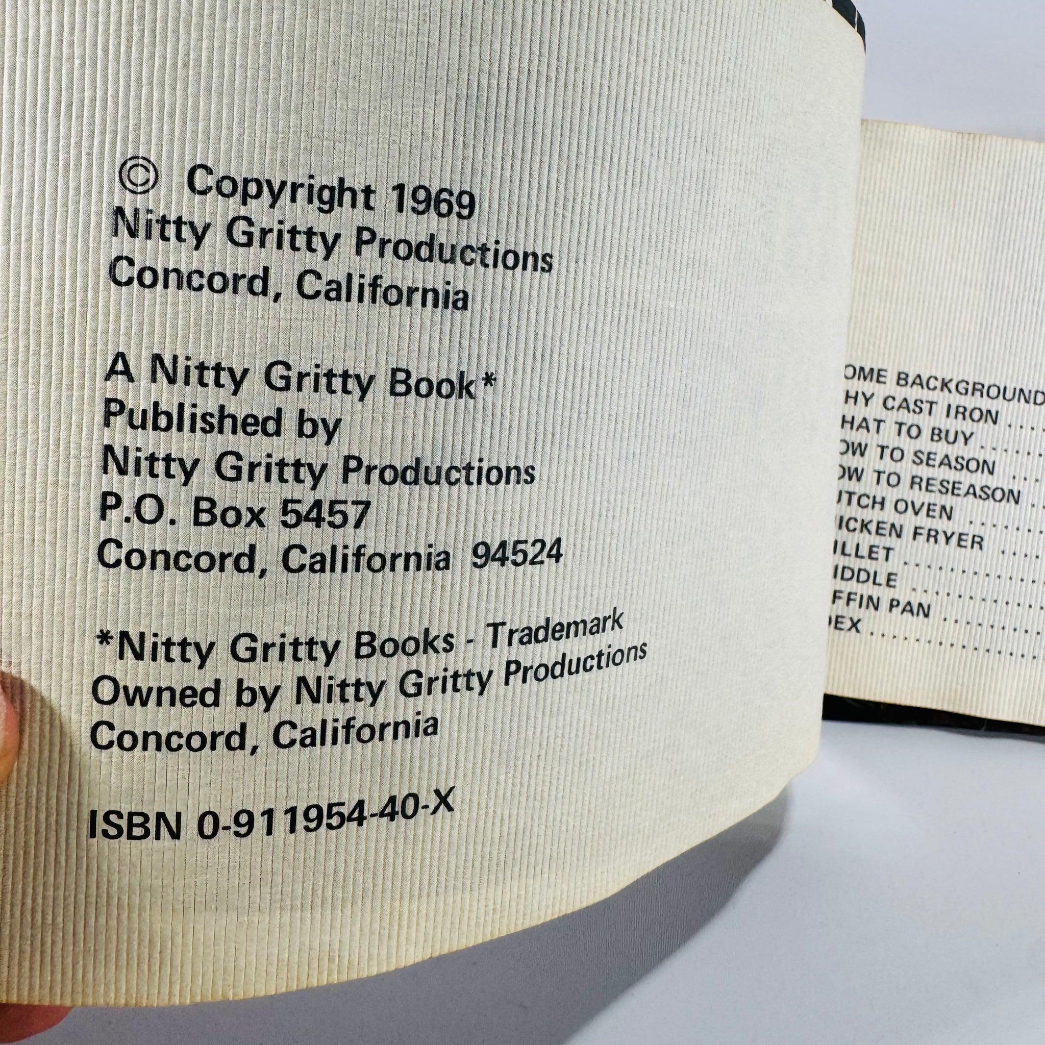 This is a vintage cast iron cooking cookbook from 1969, published in Concord, California by Nitty Gritty Productions. It’s a practical, old-school guide to getting the most from cast iron—plus recipes built around classic pieces like the Dutch oven, skillet, griddle, and even a muffin pan.