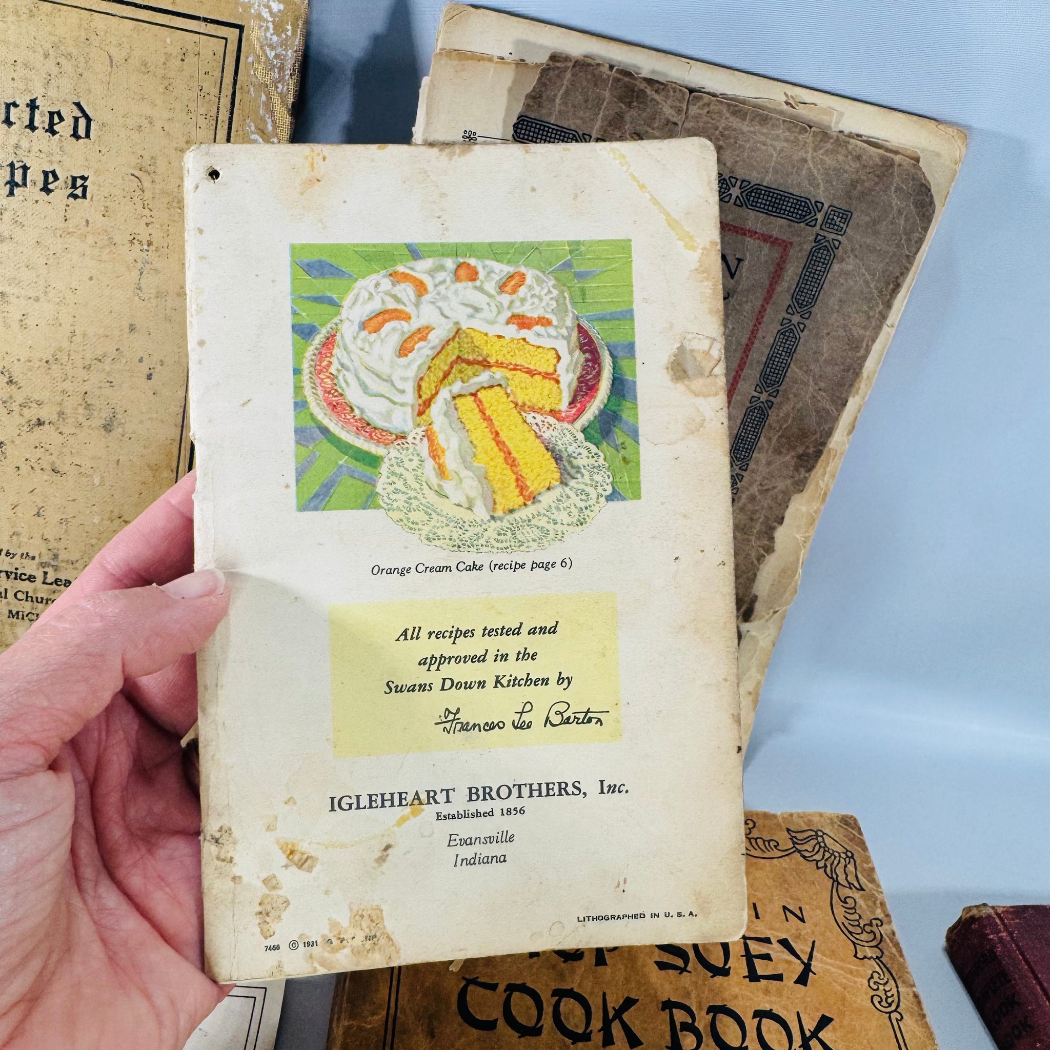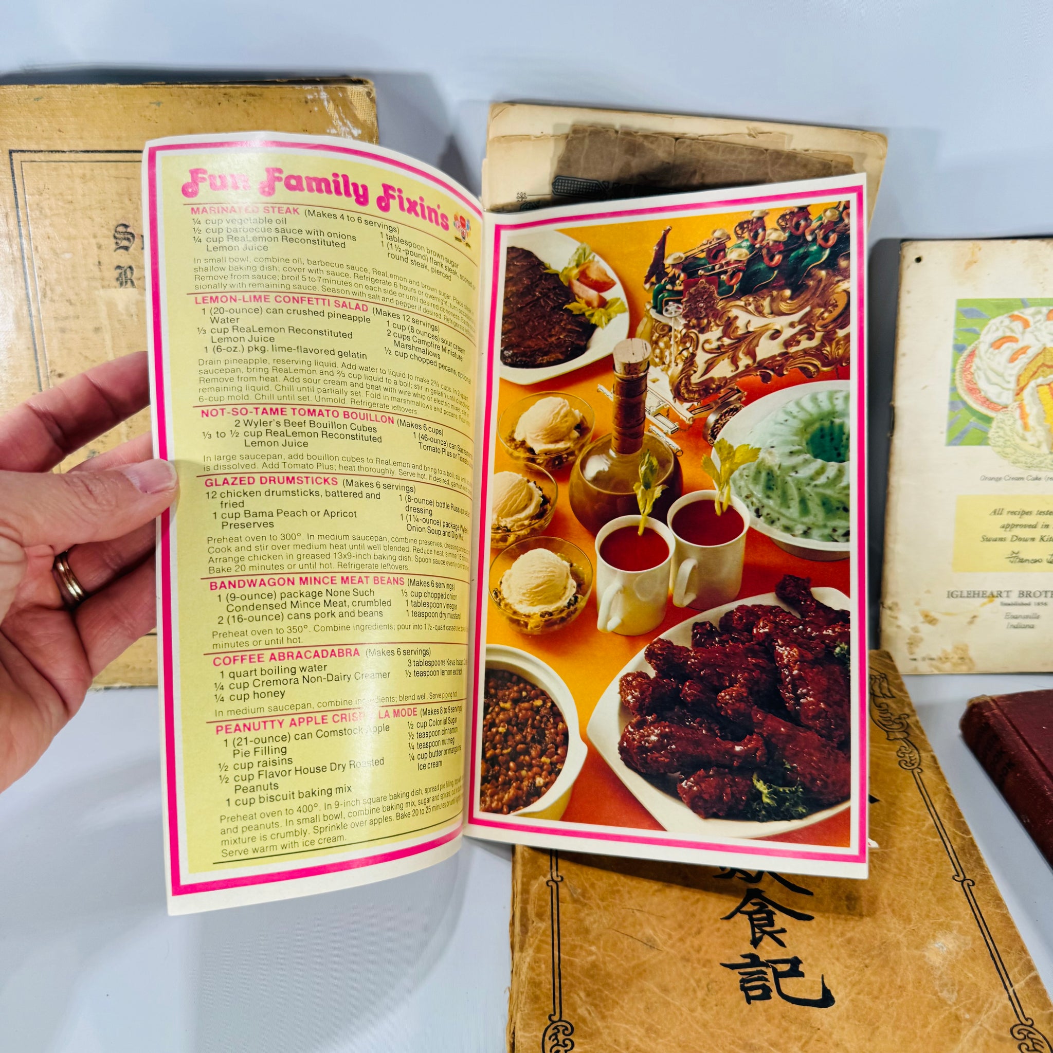 This Vintage Cookbooks bundle is pure kitchen time-capsule energy—church-supper classics, brand-test-kitchen staples, and a surprisingly charming “Mandarin Chop Suey” booklet from 1928. These are not pristine—they’re the real, splattered, scribbled, “passed-down and actually used” kind of books that carry family history in the margins. You’ll find everything from everyday soups and meat dishes to baking-brand recipes and bold 1970s graphics. Photo-verified, honestly described, and rescued from the landfill for the readers and collectors who get it.