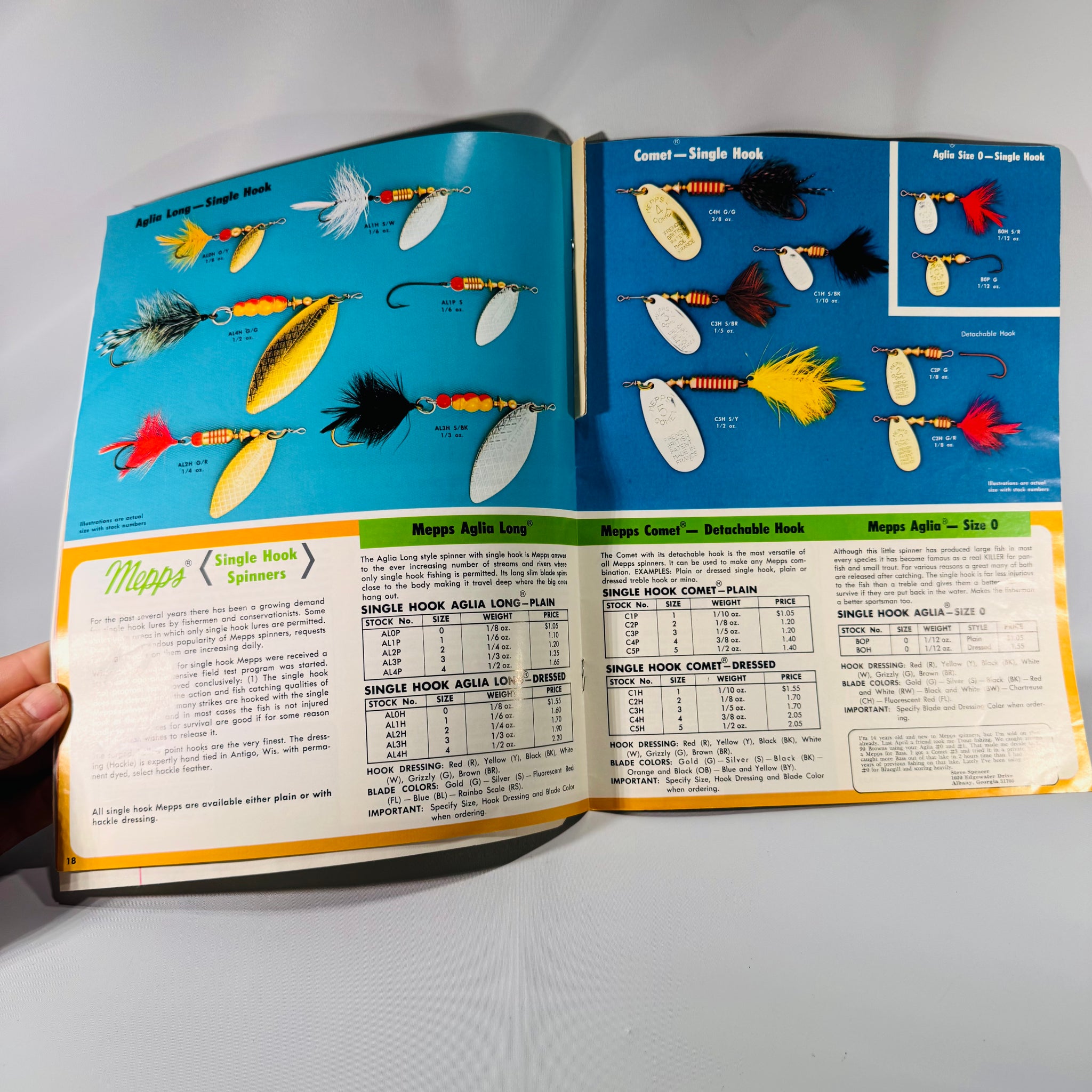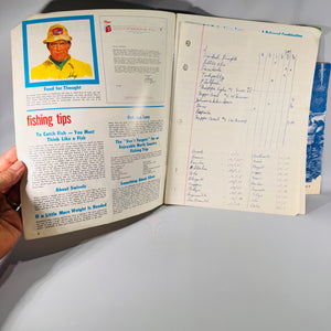 Some vintage finds are just meant to be paired—and this fishing-themed duo reels in nostalgia and practical charm. First up is the bold and colorful Let’s Go Fishin’! 1974 Fisherman's Guide by T. Layton “Shep” Shepherd, the face of Mepps lures. Packed with lure photos, fishing tips, and pricing charts, it’s more than a catalog—it’s a time capsule of tacklebox history. Inside, you’ll even find handwritten notes and a gear list on inserted lined paper, giving this copy a personal touch straight from a dedicated angler.