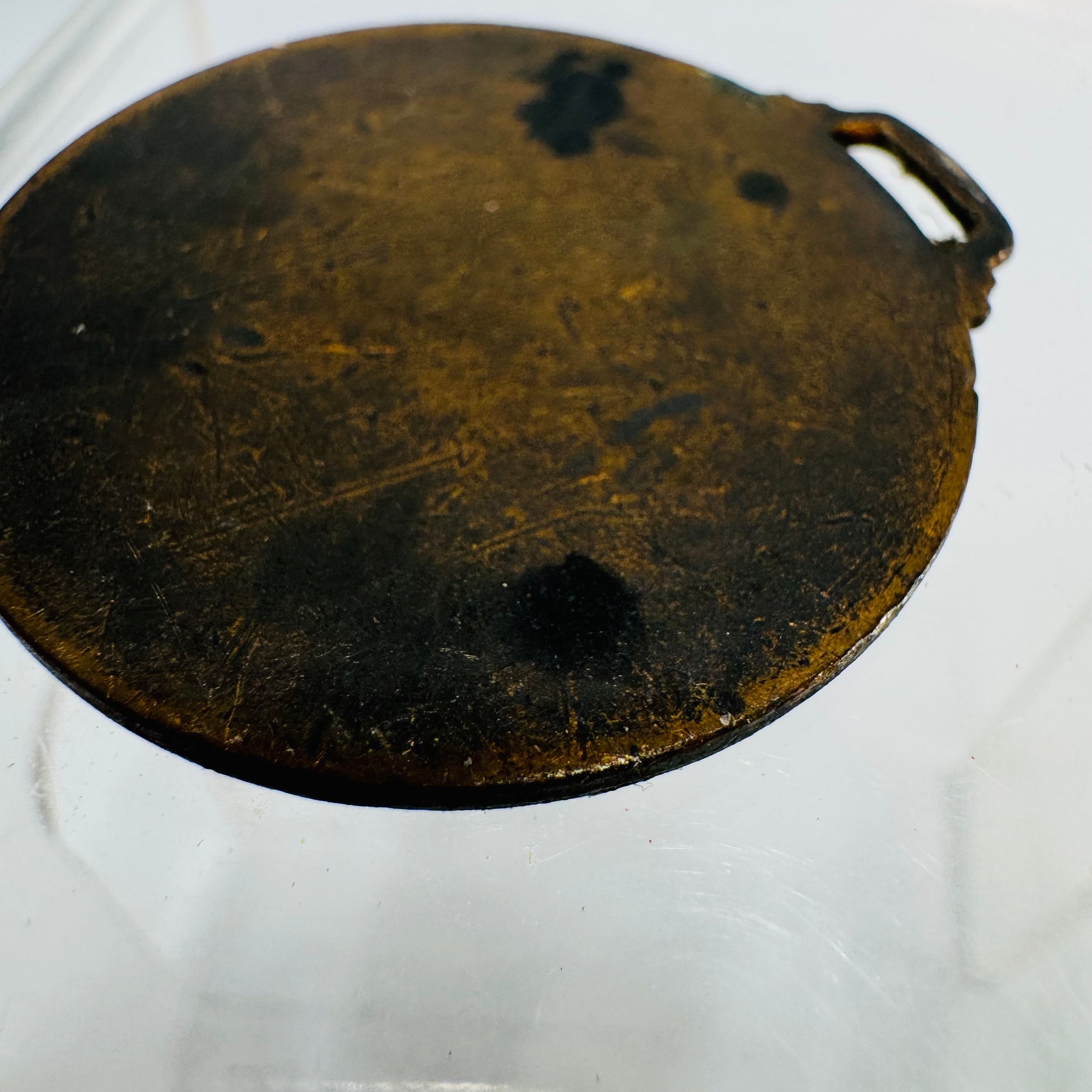 • Surface patina and oxidation are visible on both sides