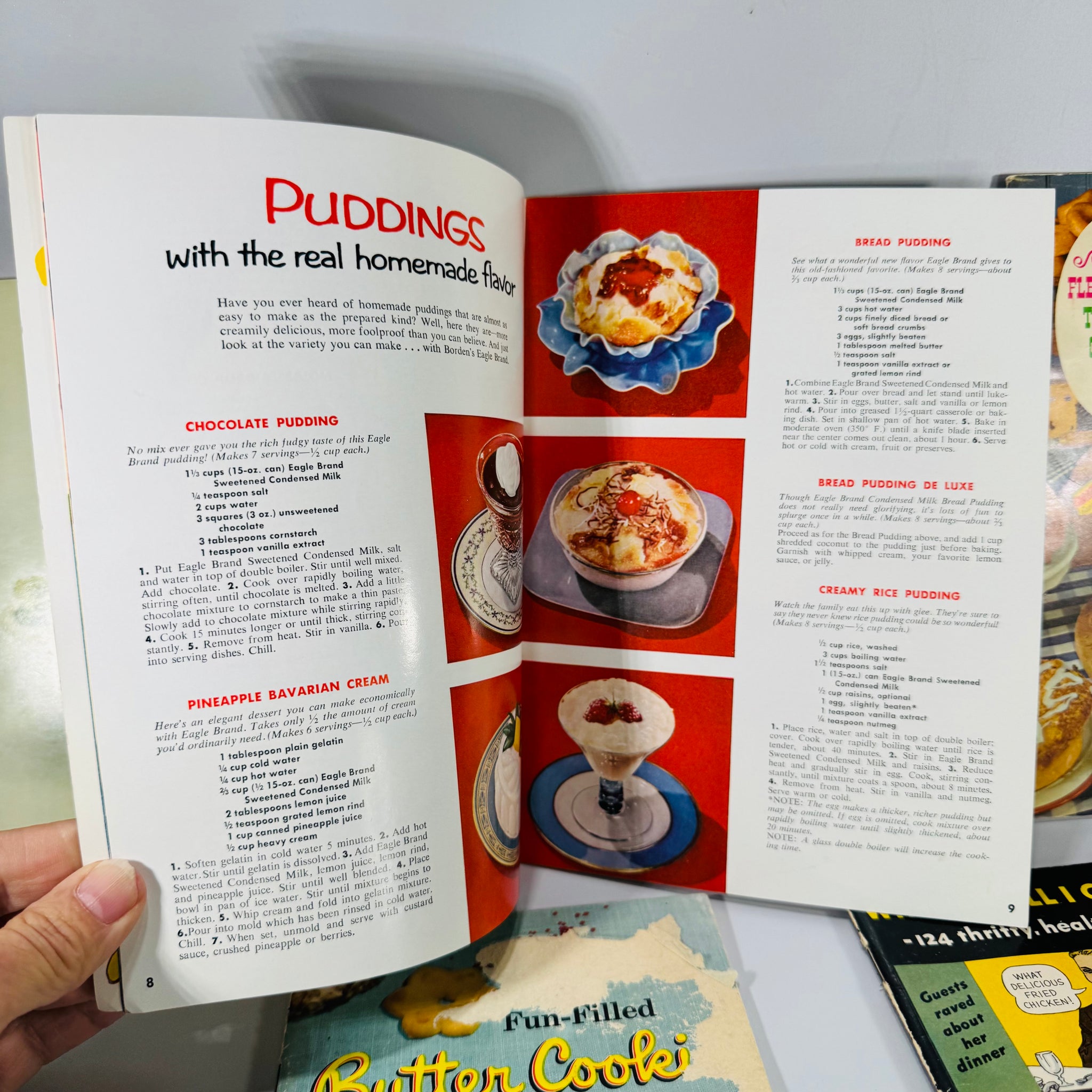 These mid-century corporate cookbooks were produced by major American brands—General Foods, Pillsbury, Borden’s, Standard Brands, and Spry—as a way to teach new techniques while promoting pantry staples. Today they’re valued as snapshots of advertising, cooking, and home-economics history.