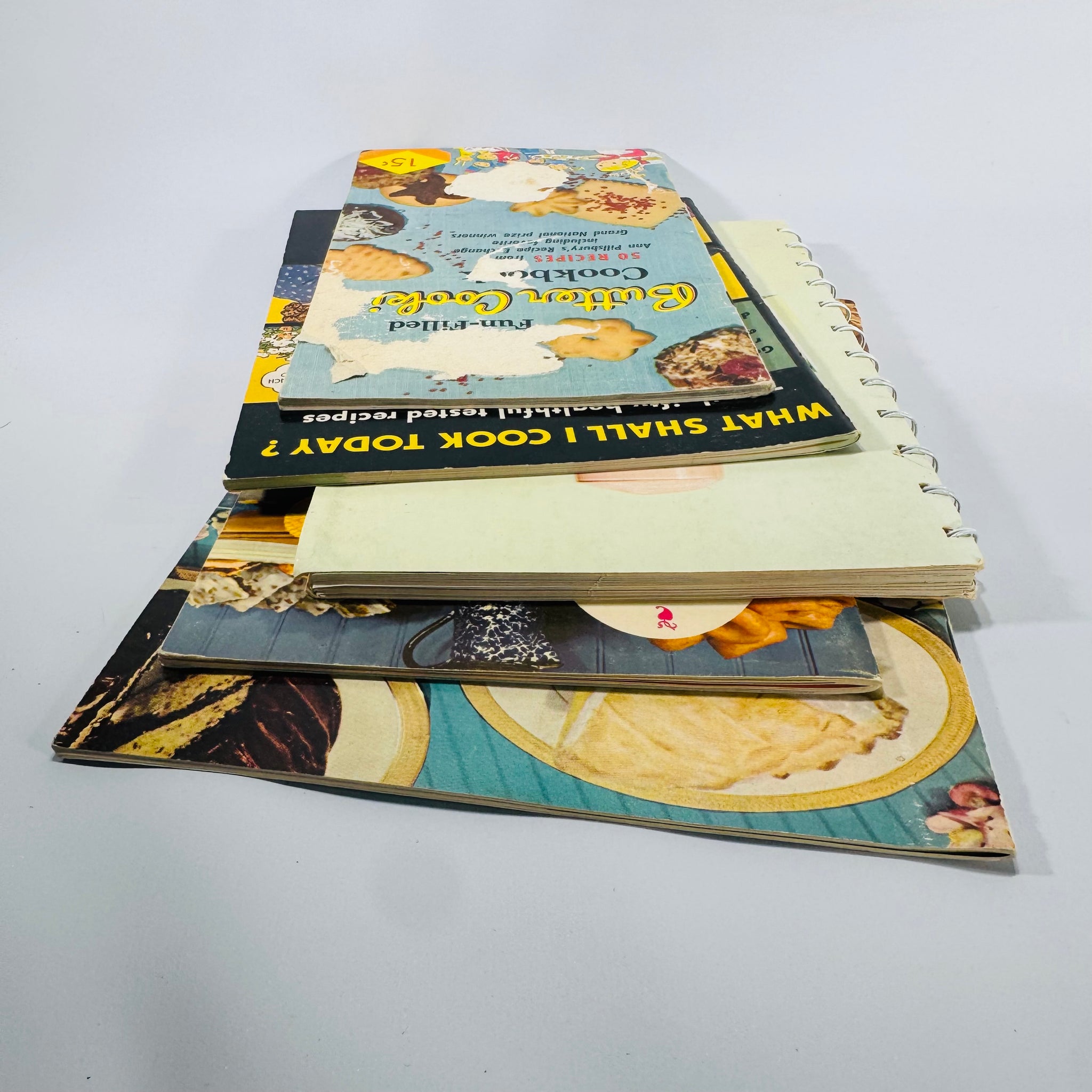 This five-piece bundle of mid-century recipe booklets brings together classic advertising cookbooks from Jell-O, Borden’s, Fleischmann’s, Pillsbury, and Spry. These compact guides caught the eye of home cooks in the 1950s and 1960s and helped define an era of American kitchen culture.
