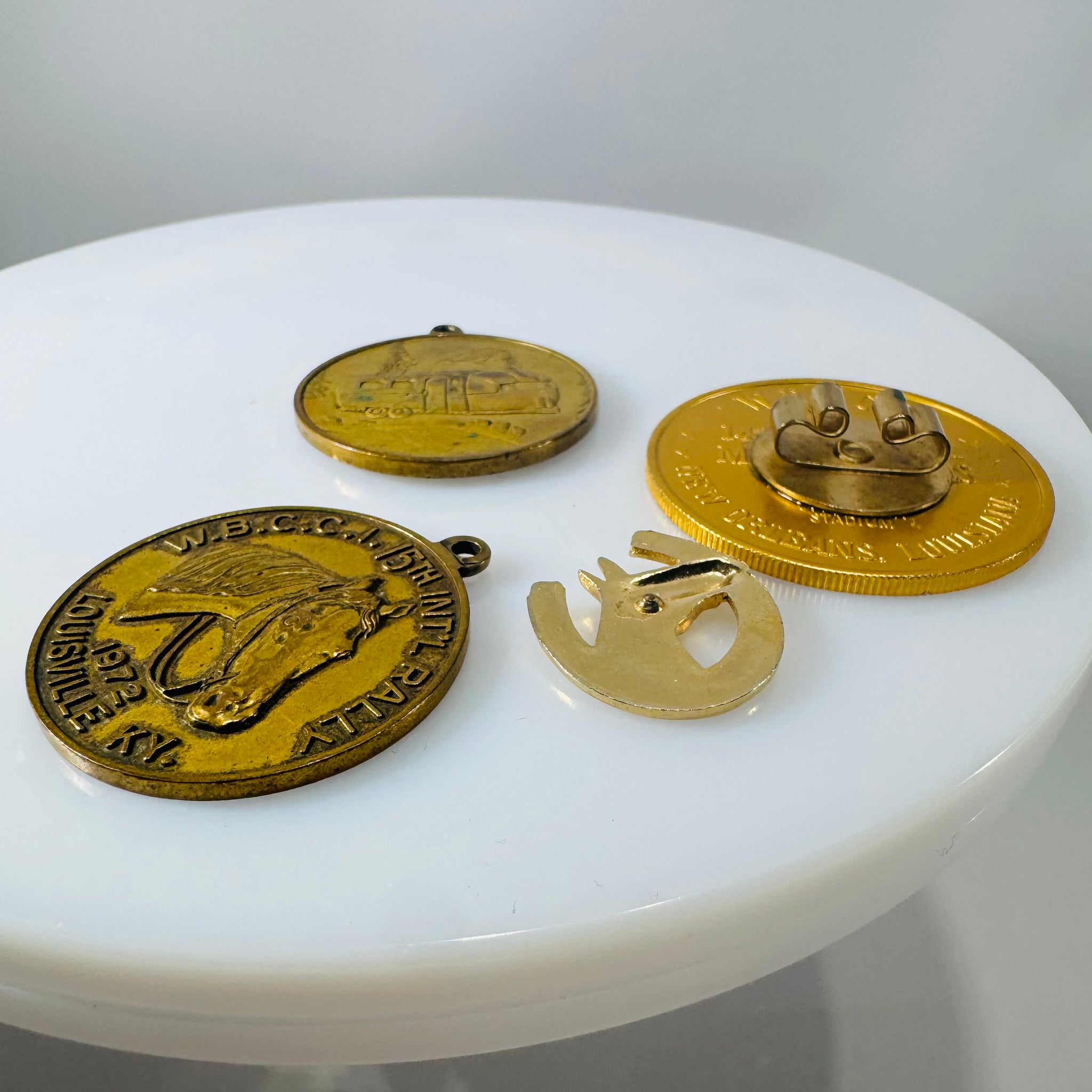 A small, display-worthy piece of Airstream travel history. This vintage WBCCI (Wally Byam Caravan Club International) lot includes rally medals and tokens tied to early-1970s Gulf States gatherings—plus a tiny horseshoe.